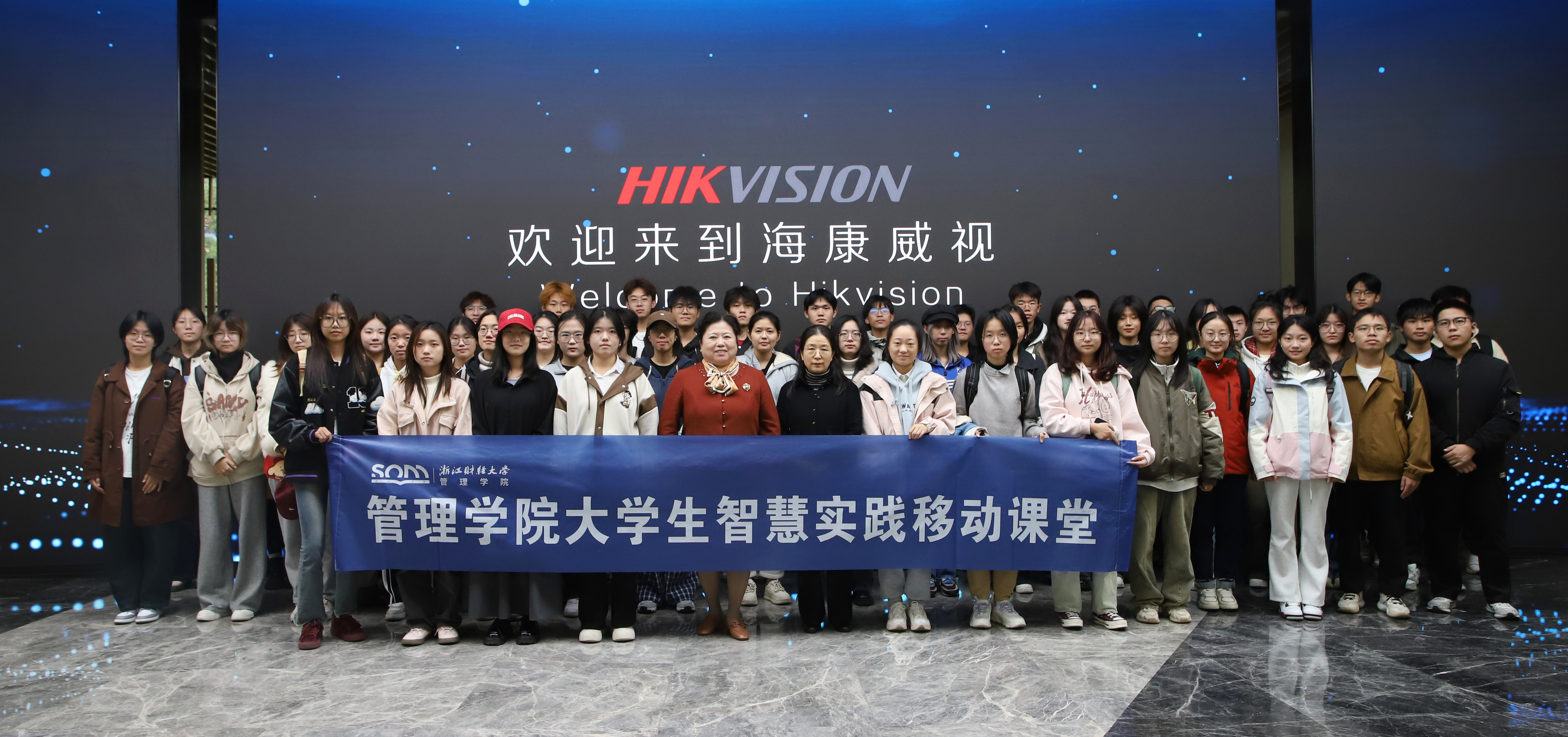 24数智管理创新班师生、工商管理大类部分学生代表前往杭州海康威视总部参观学习,数智管理创新班项目执行人沈渊教授、24级数智管理创新班班主任吴丽民老师参与本次活动。