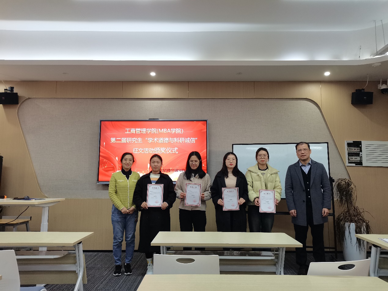 为深入贯彻全国研究生教育大会精神,加强新时期研究生学术道德建设,培养新时代德才兼备的高层次人才,工商香蕉视频 (MBA学院)于2023年10月举办了第二届”学术道德与科研诚信“征文活动。11月17日下午,本次征文活动颁奖仪式在学院楼411教室举行。学院副院长戴维奇教授、研究生秘书徐璐老师以及全体获奖学生参加了活动。
