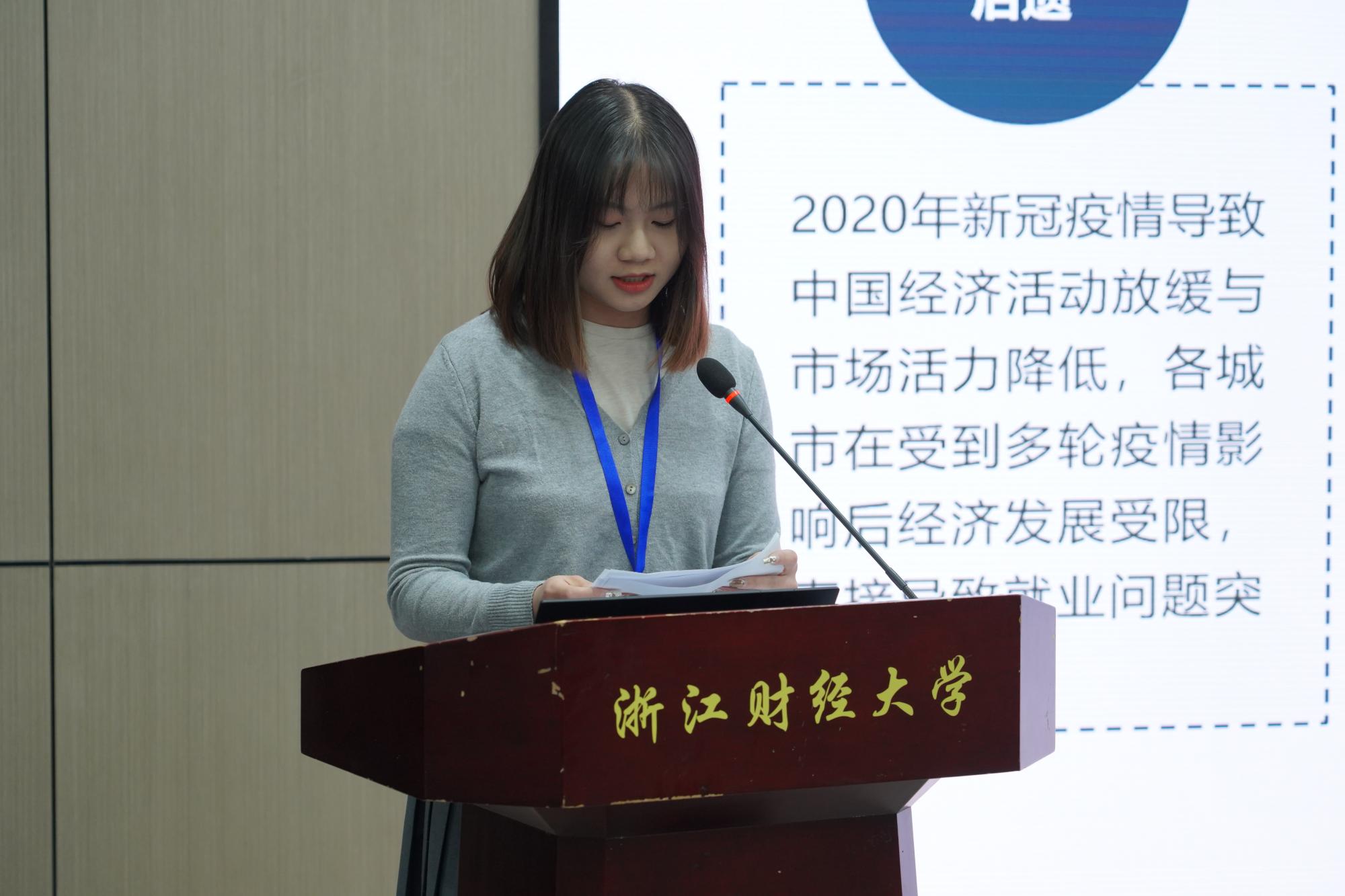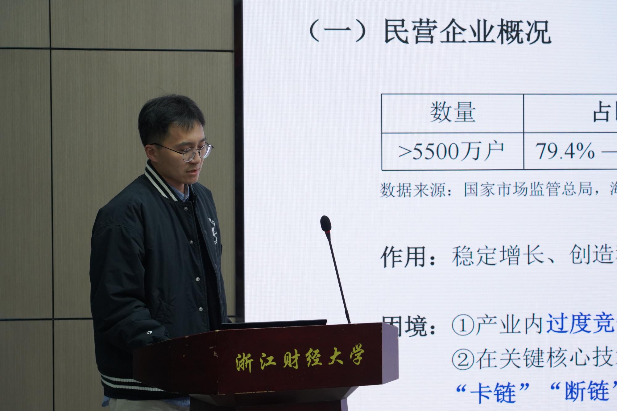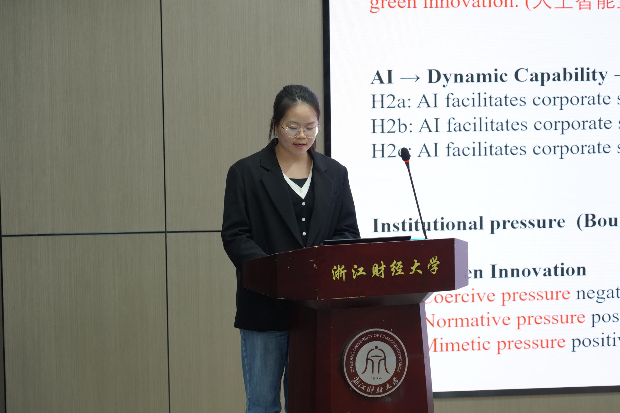入围研究生按照抽签顺序依次上台汇报研究成果。选手们围绕新质生产力、数字化管理、企业创新发展等热点主题深入剖析,展现了深厚的学术功底与创新能力。每位选手汇报结束后,评审专家从研究方法、数据分析、论文逻辑等方面提出中肯建议,并给予鼓励和指导。