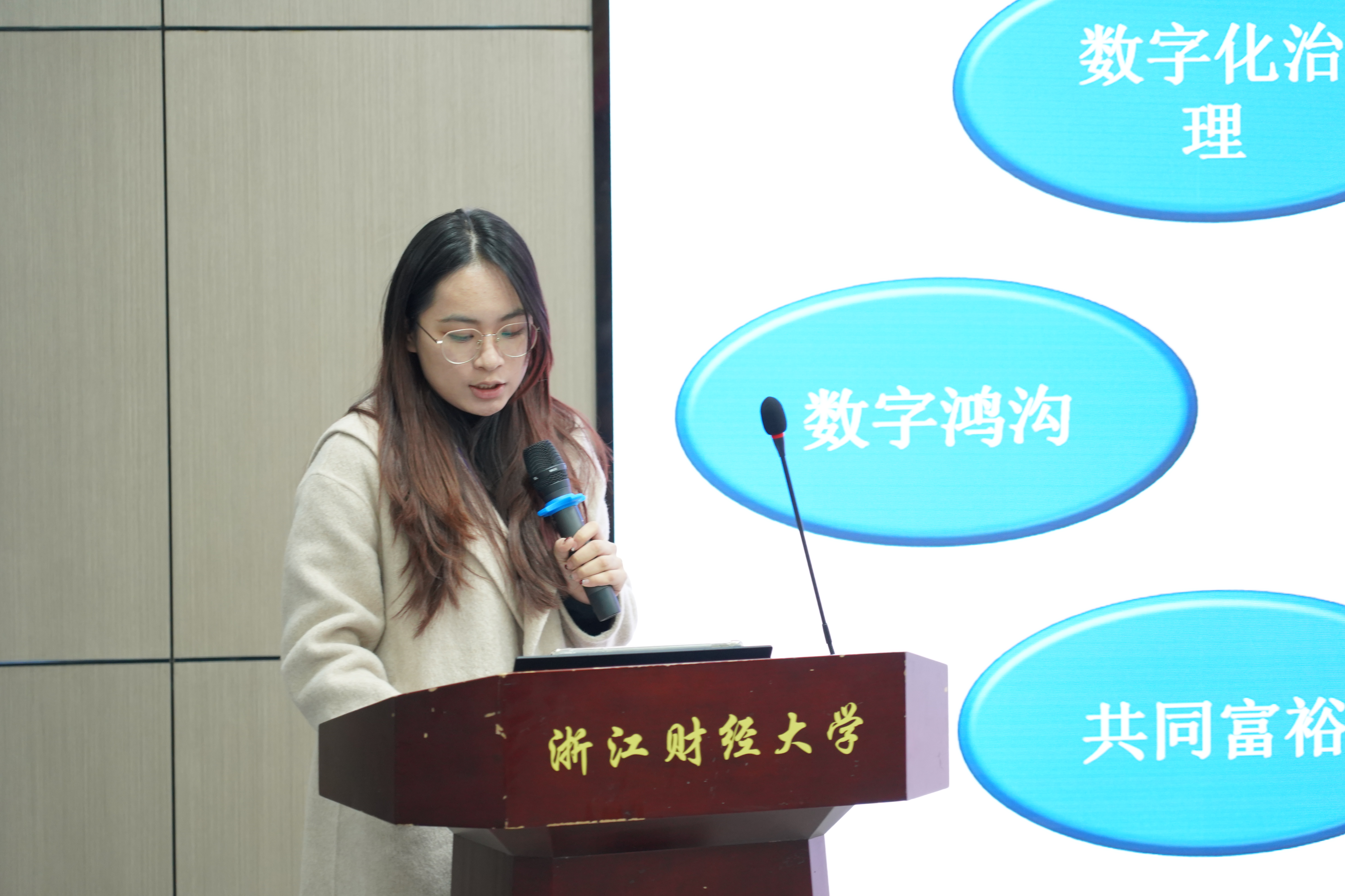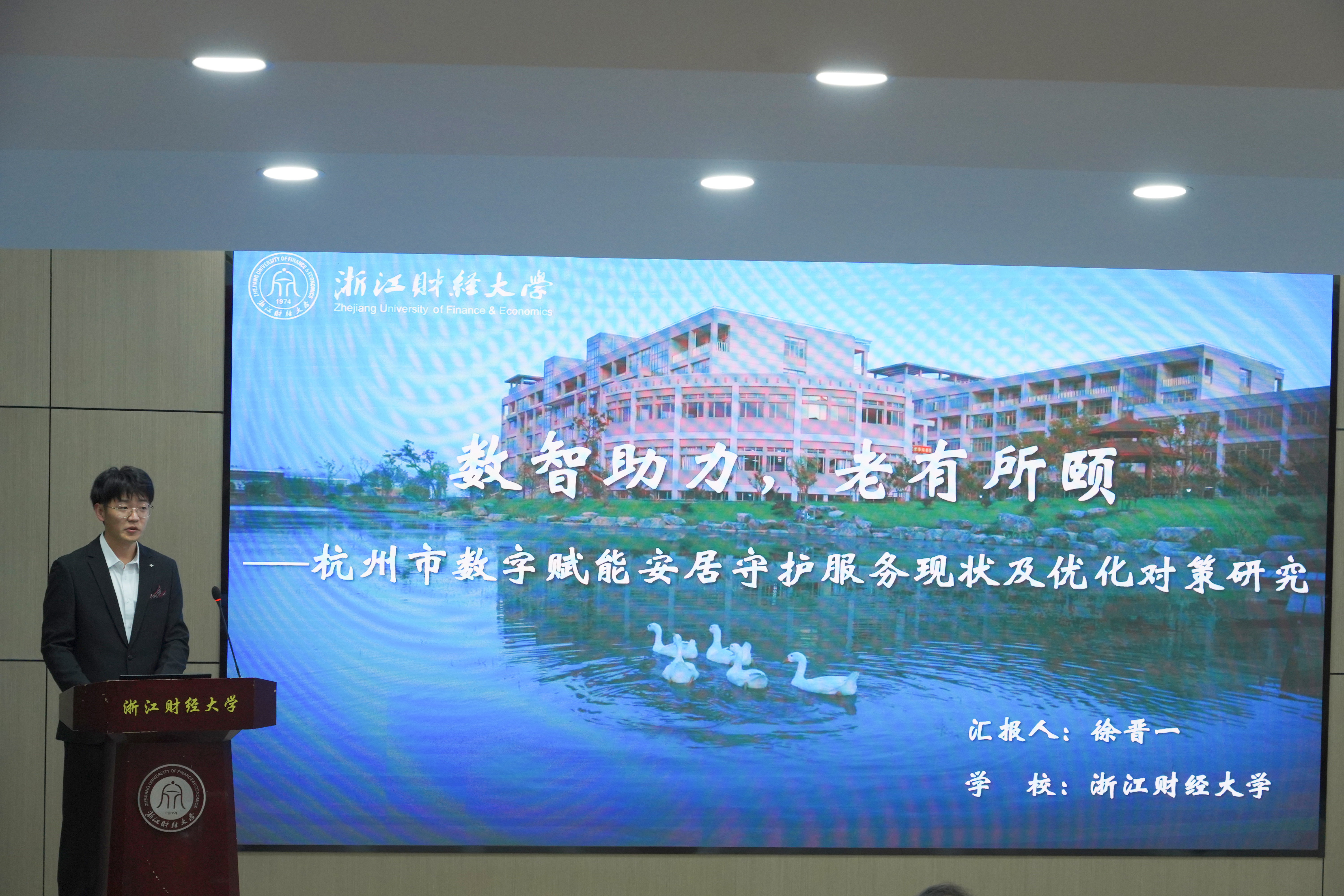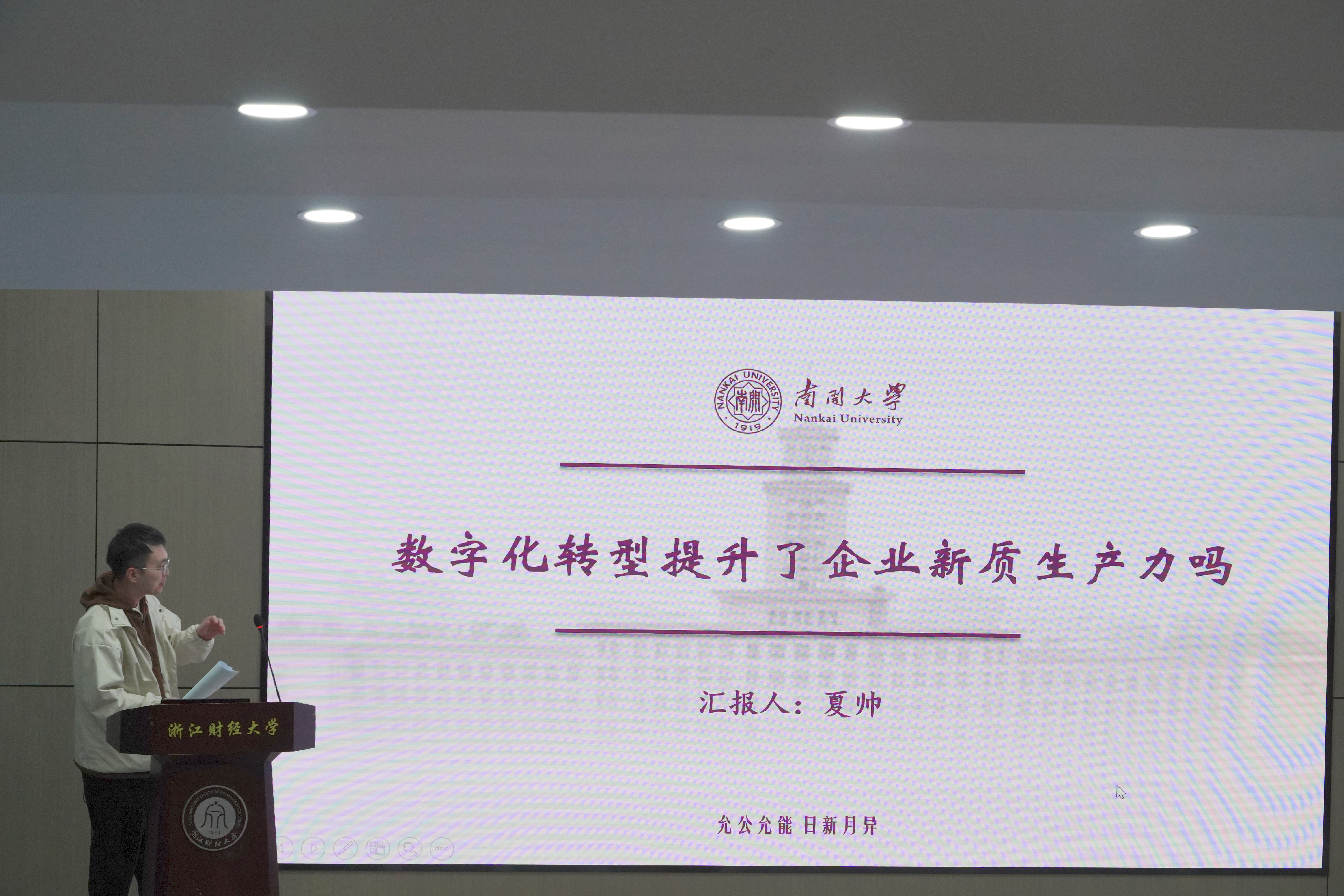 入围研究生按照抽签顺序依次上台汇报研究成果。选手们围绕新质生产力、数字化管理、企业创新发展等热点主题深入剖析,展现了深厚的学术功底与创新能力。每位选手汇报结束后,评审专家从研究方法、数据分析、论文逻辑等方面提出中肯建议,并给予鼓励和指导。