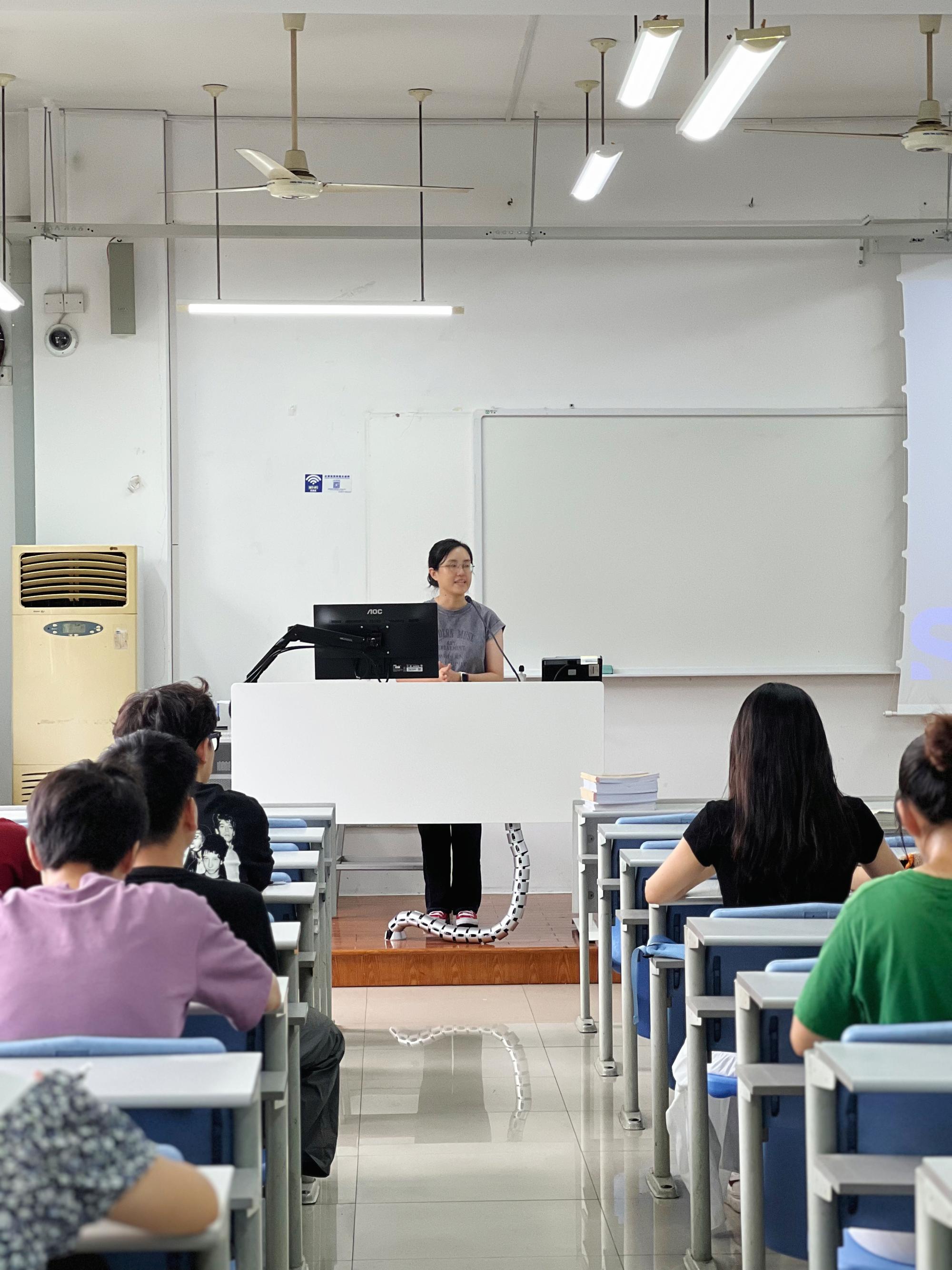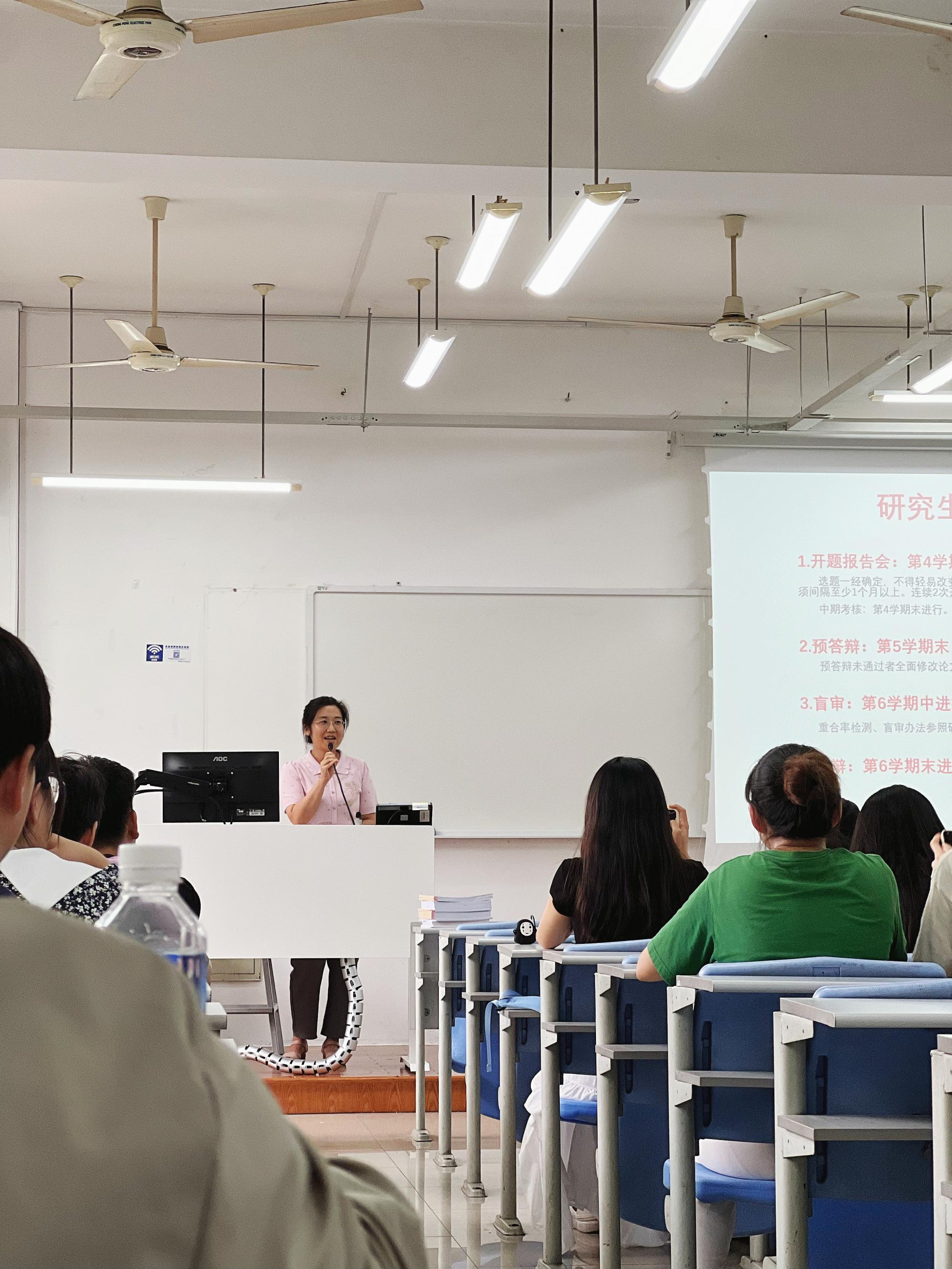 班会伊始,研究生秘书徐璐老师对新生进行了详细的学业指导。徐老师重点介绍了研究生期间学位论文写作的重要时间节点及注意事项,提醒新生们要提前制定合理的研究计划,并在遇到问题时及时寻求指导。紧接着,辅导员沈晓云老师对学生日常校园生活管理进行了全面介绍。沈老师重点讲解了学风考风、校园安全、心理健康等方面的注意事项。她提醒新生们,要增强安全意识,合理安排作息时间,并关心关注自身心理状态。