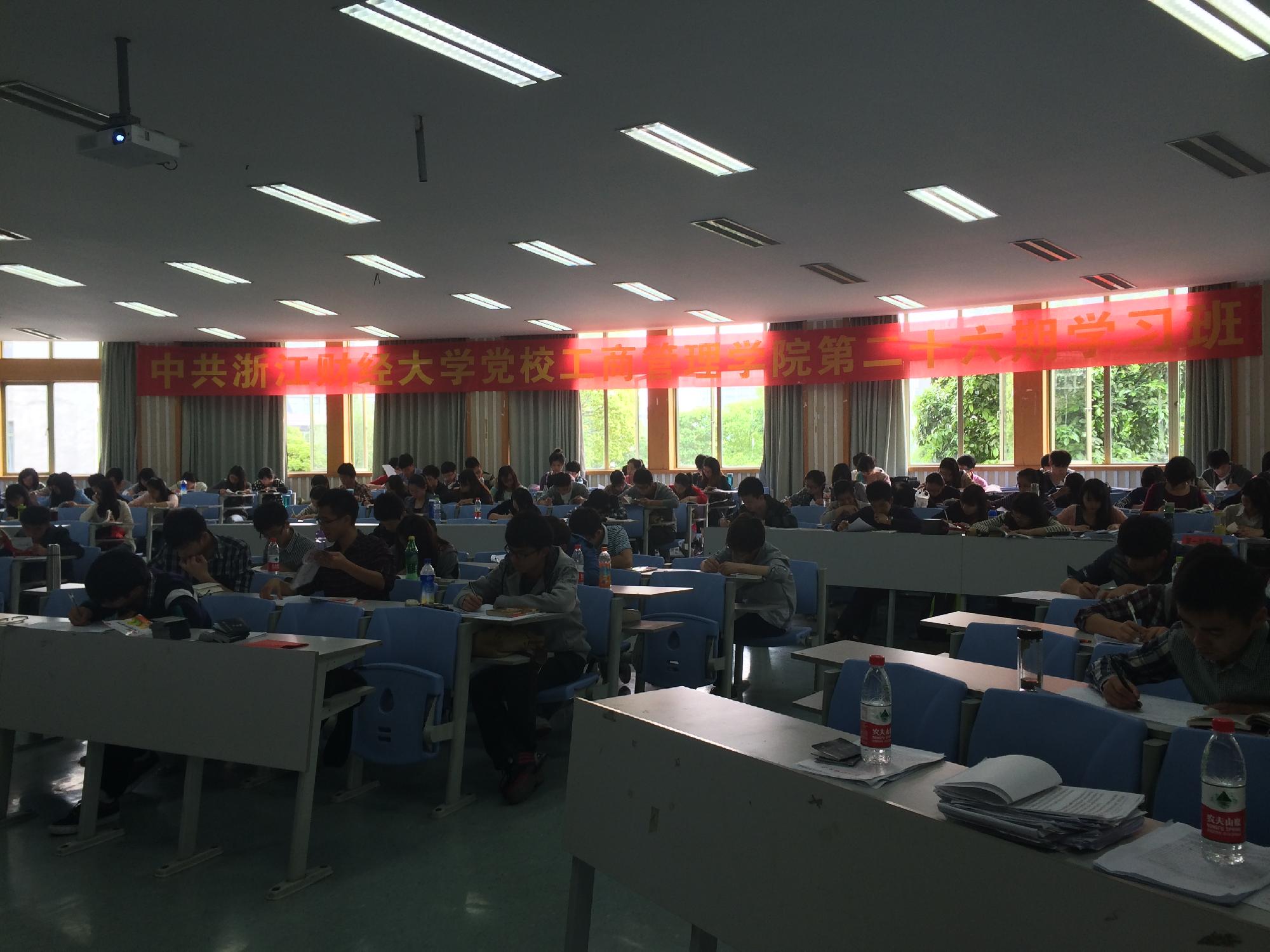 4月29日下午14:30,党校培训班学员参加了在学院楼举行的党课结业考试,本次考试由两部分组成,一为开卷形式进行的党课教材测试,二则以闭卷形式考察学员对时事政治的了解度。