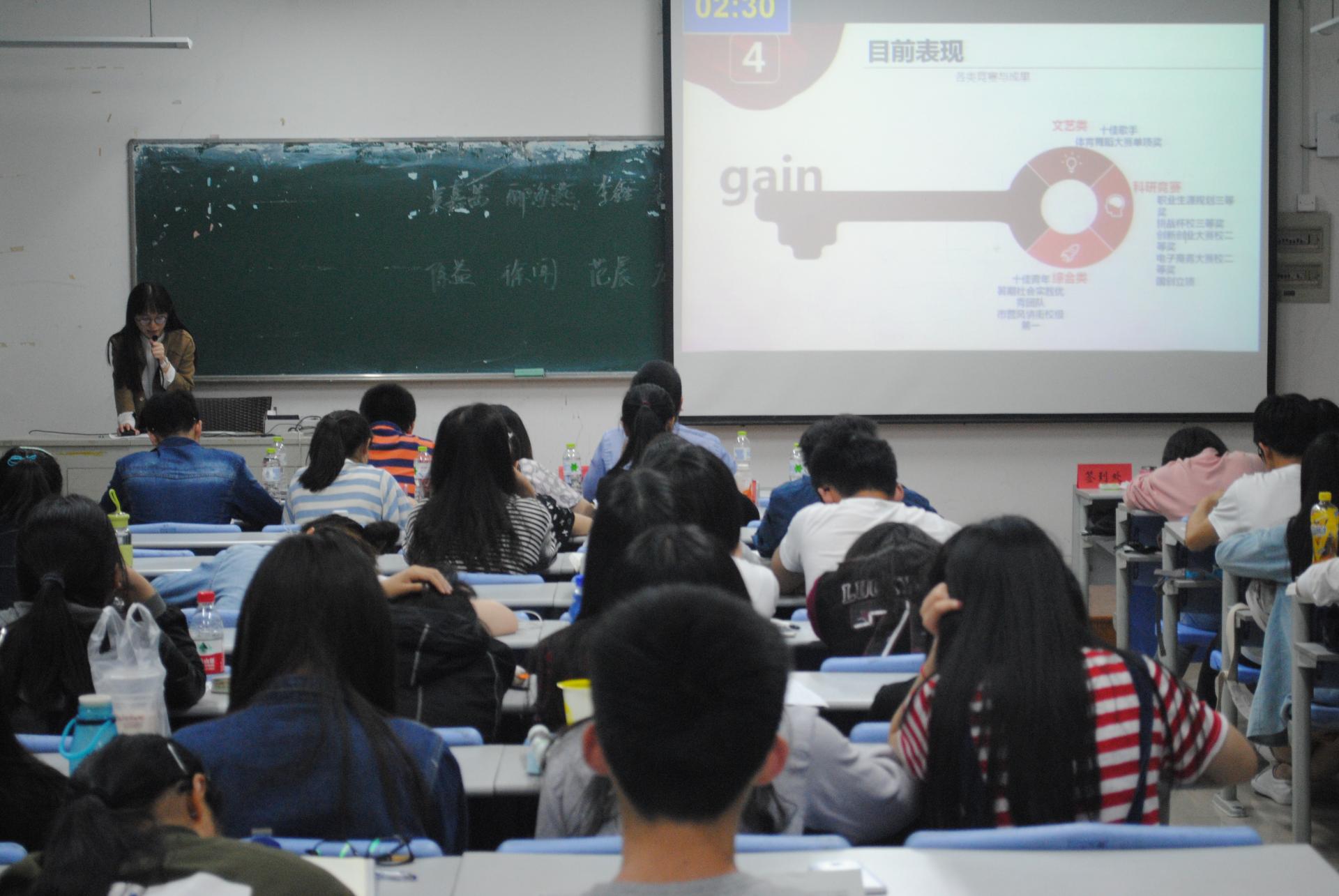 此次公开答辩会主要流程:14名发展对象根据抽签结果依次上台进行答辩,每位答辩人时间12分钟,其中6分钟为根据自己入党意愿、目前表现和未来规划进行个人PPT展示,6分钟为回答问题环节,每人回答两个问题其中一个问题为必答题,必答题为同一个问题,主要侧重考察其入党意愿和对党的认识,一个为从8个选定的问题中随机抽取的问题,主要考察其对党员职责、形象与素质提升认识,对我国当前重要经济发展战略、发展理念与高等教育改革等基本国策关注与理解。答辩评委由本支部书记胡星平老师,支部委员沈佳其、曾晓卉、苏珊,周琳以及学生第二党支部书记刘远琳老师等6位组成。评委根据各位发展对象答辩展示的入党意愿、目前表现与未来规划及回答问题表现等情况在评分表上打分,然后根据分数高低从14名发展对象中投出10位同学,支部根据6位评委投票情况,由选定的唱票、计票、监票人员进行唱票、计票并监督,得票前10位确定为本支部本次发展对象。