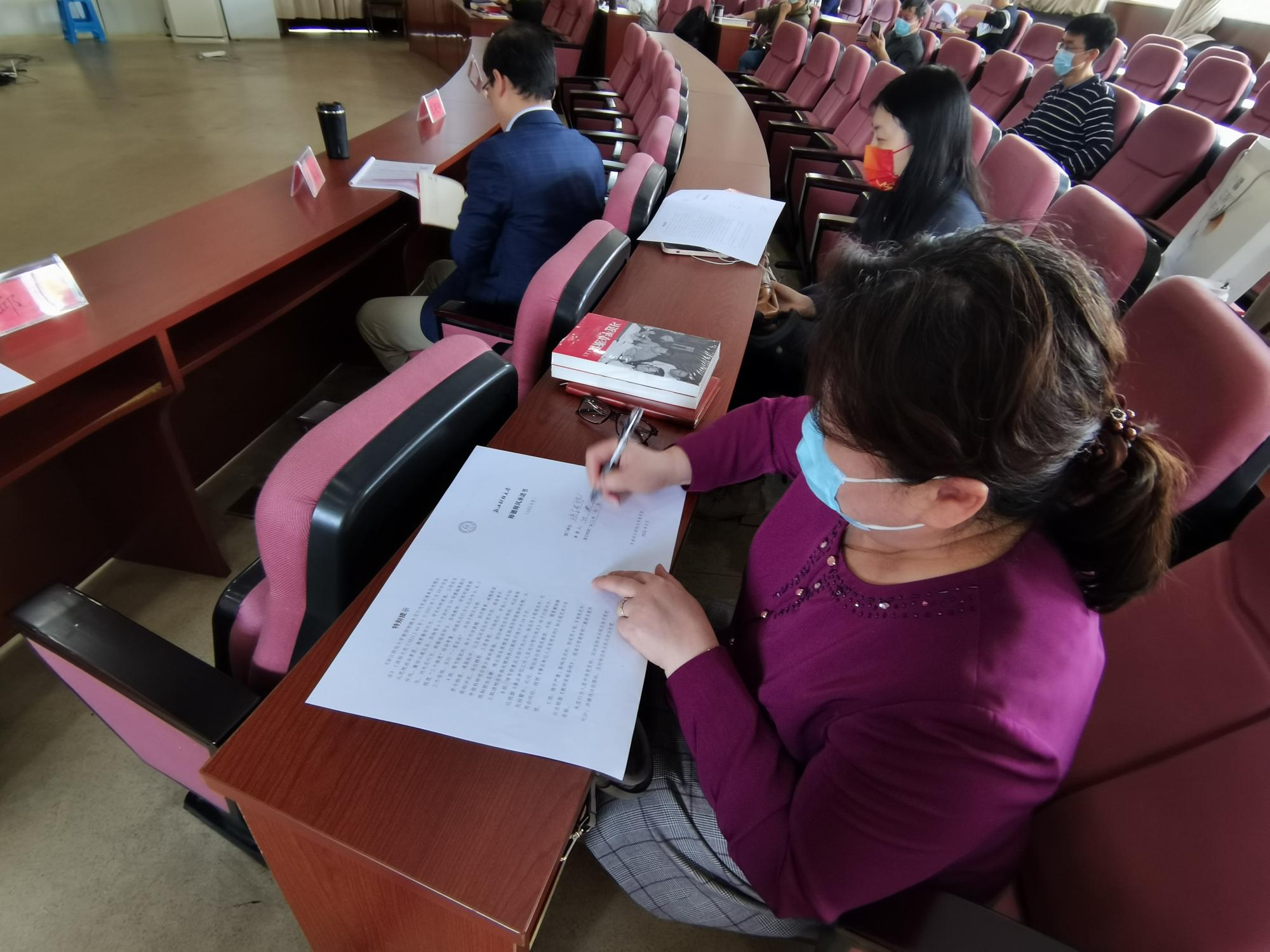 4月19日下午,学院在217报告厅举行了师德师风承诺书签订仪式。学院全体教职工参加了会议,会议由学院党委书记黄卫华主持。