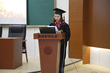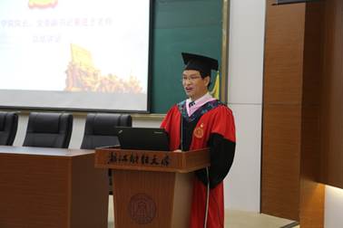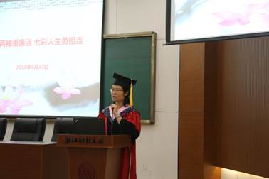 2018届全体毕业生党员相聚在学院楼217会议室,共同参加主题为“清风两袖重廉洁,七彩人生勇担当”在浙财的最后一次党日活动。学院院长、党委副书记董进才,党委副书记、纪委书记谢敏,副院长、党委委员倪文斌,工会主席、党委委员郭军灵,各学生党支部书记出席活动。活动由学院党务秘书、学生第四党支部书记周衍彤主持。