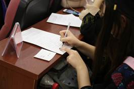 毕业生离校是一个既重要又繁琐细致的过程,全体毕业生党员承诺要处处以身作则,率先垂范,乐于奉献,做好各项文明离校工作,会上,党员们认真阅读并签署文明离校承诺书。