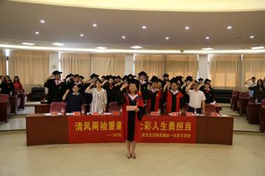 签署毕,学生第五党支部党员夏梦颐代表18届毕业生党员发言,她承诺,全体毕业生党员一定会牢记学院的培养和教诲,在未来的工作学习中廉洁从业,争做合格共产党员。