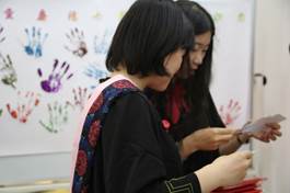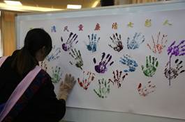 “七彩人生路,党员共前行”。入场时,每位毕业生党员纷纷在展板上留下了七彩手印,留下了他们对廉洁从业最美好的承诺。