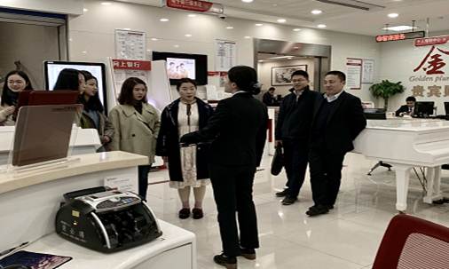 第一党支部的党员们来到南京银行城西分行办公大厅,任行长从银行概况、主营业务、行业地位等多个方面进行了介绍。近年来,南京银行城西分行大力发展科技文化金融业务,服务浙江地区的科技文化型小微企业,取得了较好成效,并携手滨江支行带动钱江两岸片区支行业务发展的“一体两翼”业务模式,打造分行科技文化金融服务的升级版。