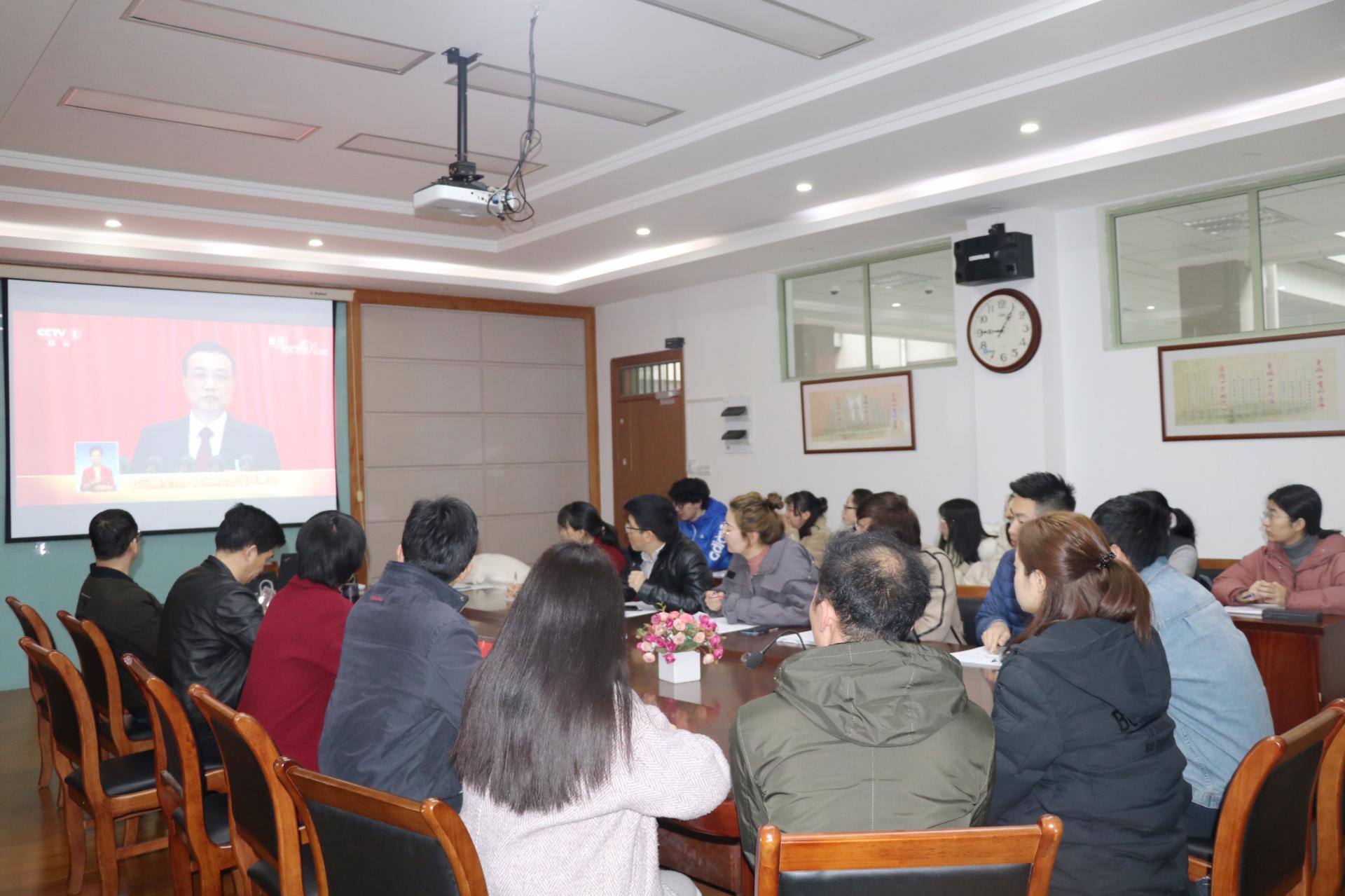 3月5日上午9点,第十三届全国人民代表大会第二次会议在北京人民大会堂隆重开幕,国务院总理李克强向大会作政府工作报告。为深入学习两会精神,工商香蕉视频 党委组织教工党员、学生党员齐聚一堂,在学院楼410会议室观看了第十三届全国人民代表大会第二次会议开幕式直播。学院党政领导班子出席观看。