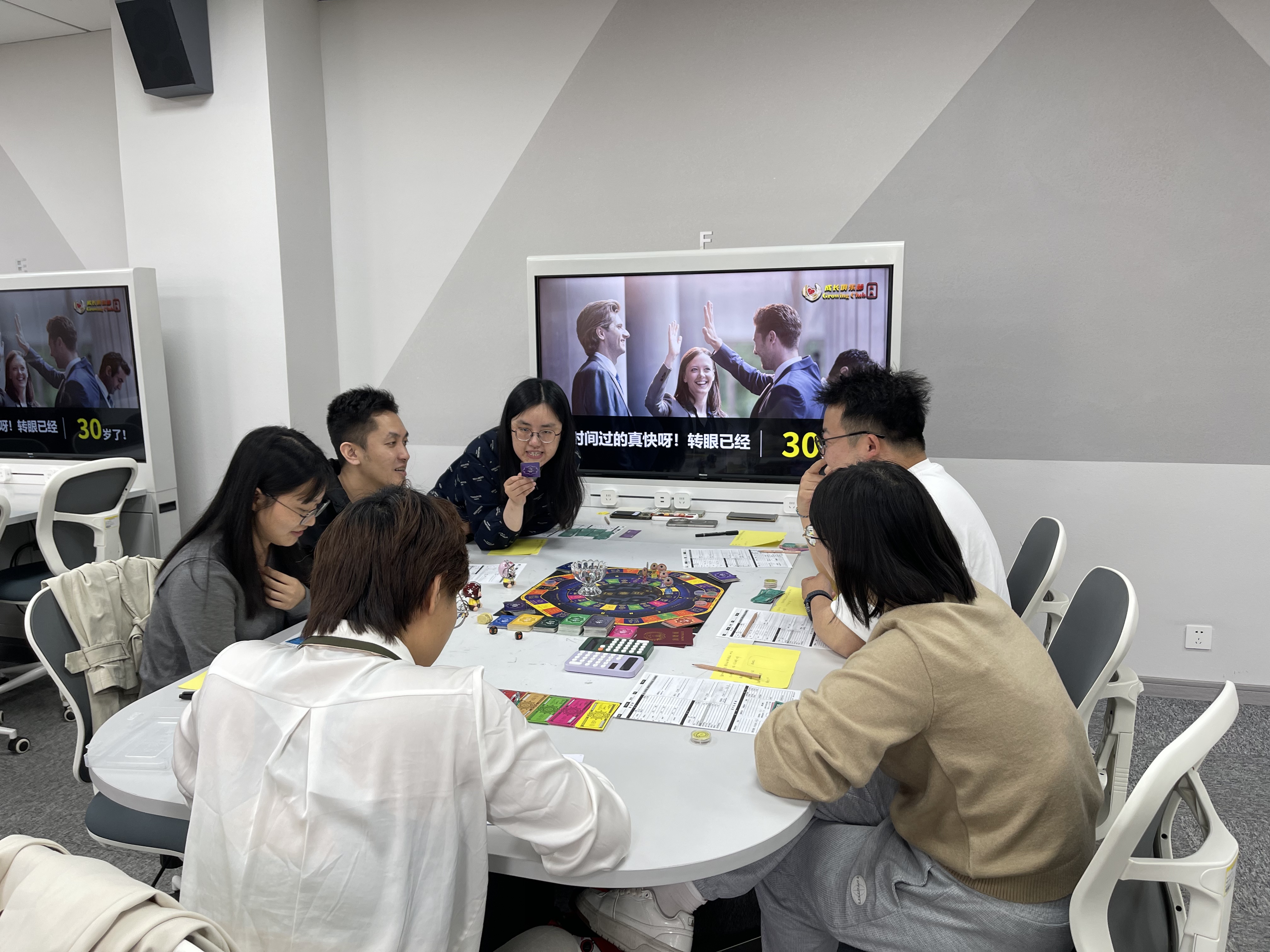 随后,大家开始了财富流沙盘推演活动。从一开始的一无所有,到获得一定基础资金,再到规划结婚生子,最终实现财富自由,每一个阶段都充满了挑战和机遇。参与者们热情高涨,积极投入,每个人都在活动中找到自己的角色和定位,并在游戏中模拟人生的各个阶段,体验团队间的协作和竞争,让他们在思考与实践中成长。
