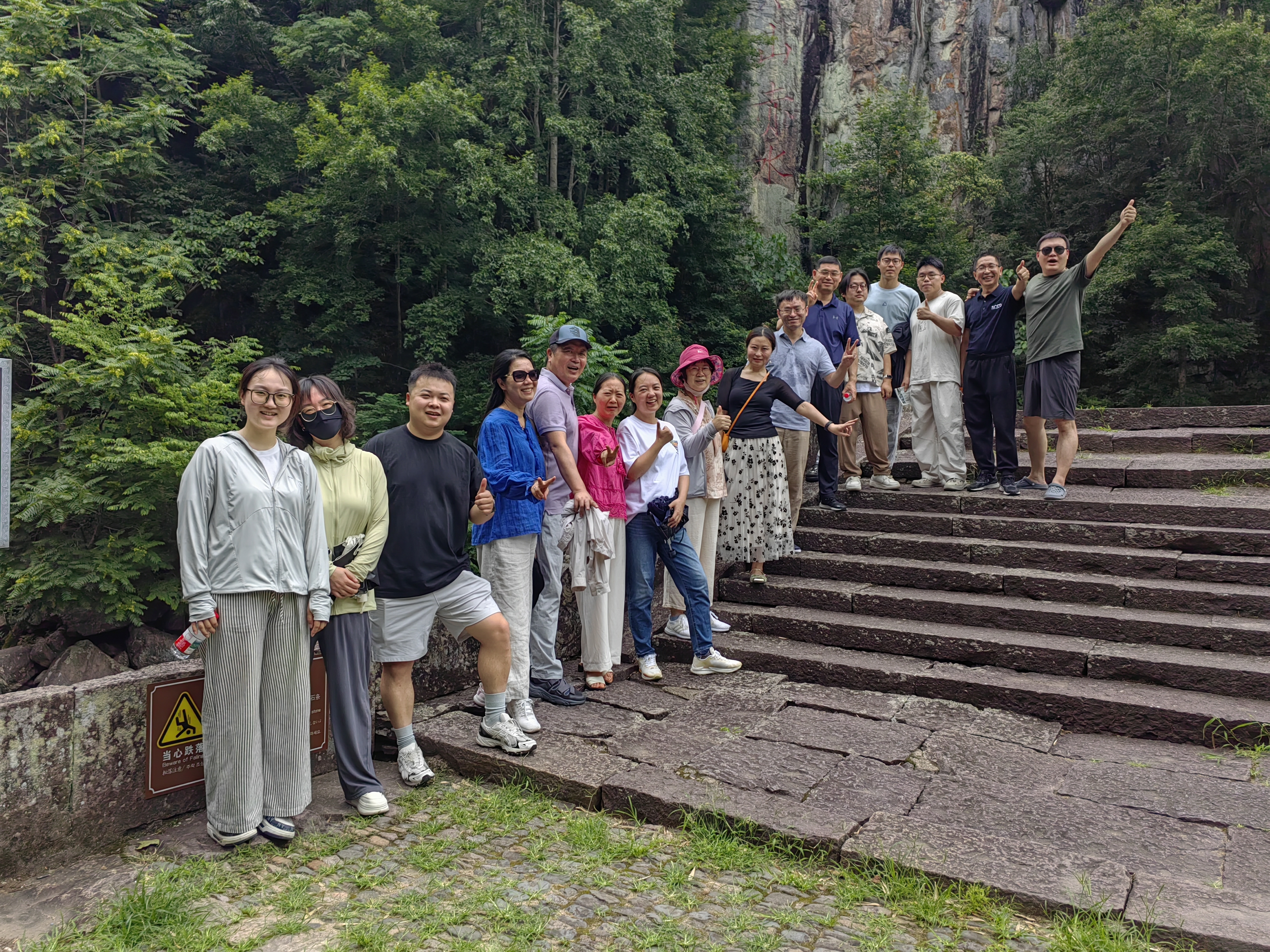 丹山赤水地处四明山腹地,是一处以自然山水为依托,以浙东山村风情为内涵,以绝壁、奇岩、古村、溪流、飞瀑为特色的地区。区内古树参天,溪水潺潺,老师们沿着崎岖蜿蜒的山路,一路欢声笑语,或驻足欣赏,或拍照留念,在充分享受自然山水风光的同时,也近距离体验了淳朴的浙东风土人情。