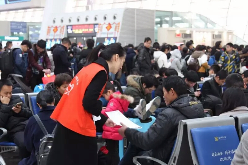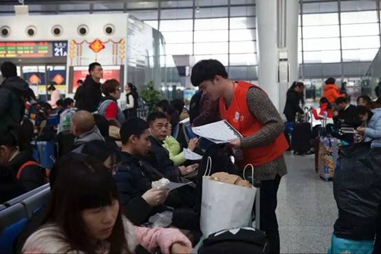 春运期间,旅客出行是否文明在一定程度上反映着国人素质的高低,“红马甲”们为此进行了文明出行宣讲活动,他们热情地向旅客分发宣传手册,并邀请旅客们在文明出行签名墙上留下自己的姓名,承诺以身作则,共同践行和倡导文明出行。志愿者们为做出签名承诺的乘客们送上了中国结,希望借助其中的寓意,向旅客传达平安出行的祝福。