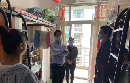 林骁邦老师和学办带班辅导员们先后走访成蹊苑56幢、58幢学生寝室,在走访过程中林老师仔细询问了同学们疫情期间的学习、生活情况,了解同学们毕业论文的完成进度及就业去向,同时,他嘱咐同学们在特殊时期要严格遵守学校相关规定,做好自身防护措施,密切关注身体健康状况,确保疫情时期个人防护不放松,保持良好心态,如遇特殊情况及时与学院沟通反馈。