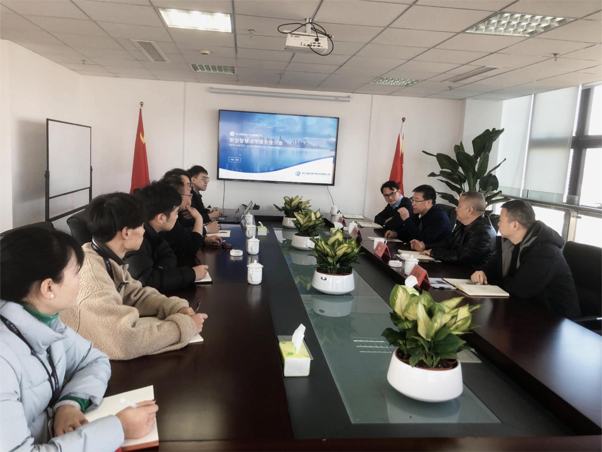 徐海平、黄文建介绍了浙江国锐数字科技有限公司的基本情况,未来发展方向,希望双方能够充分挖掘各自优势,拓展全方位、立体化校企合作的广阔空间。