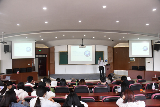 简短聘任仪式结束后,张广平校友给大家带来了精彩分享报告,给同学们分享了他在香蕉视频 学习生活和毕业后一直专注于中国房地产行业发展的职场经历,结合自身的人生感悟为同学们提供了许多大学学习生活、职业生涯规划的宝贵建议。