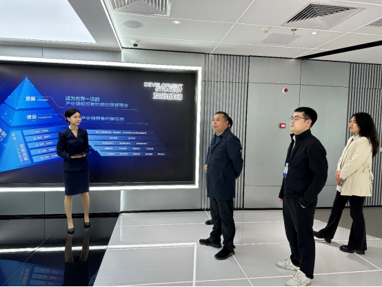 走访伊始,朱力明书记在徐峰、邵雨亭两位校友陪同下参观了公司展厅,详细了解了浙商中拓的发展历程、业务模块、战略布局、党建品牌和人才培养机制。