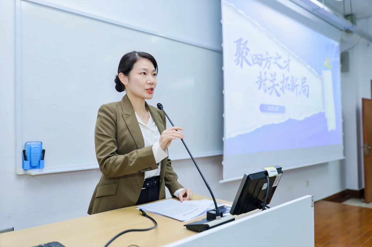 活动伊始,宣讲推介会在热烈的氛围中拉开帷幕。海南省人力资源和社会保障厅人力资源管理处处长聂莹女士为同学们详细解读了大学生来琼就业创业的各项优惠政策,从落户便利、住房保障到创业扶持,多维度展示了海南自贸港对青年人才的渴求与诚意。