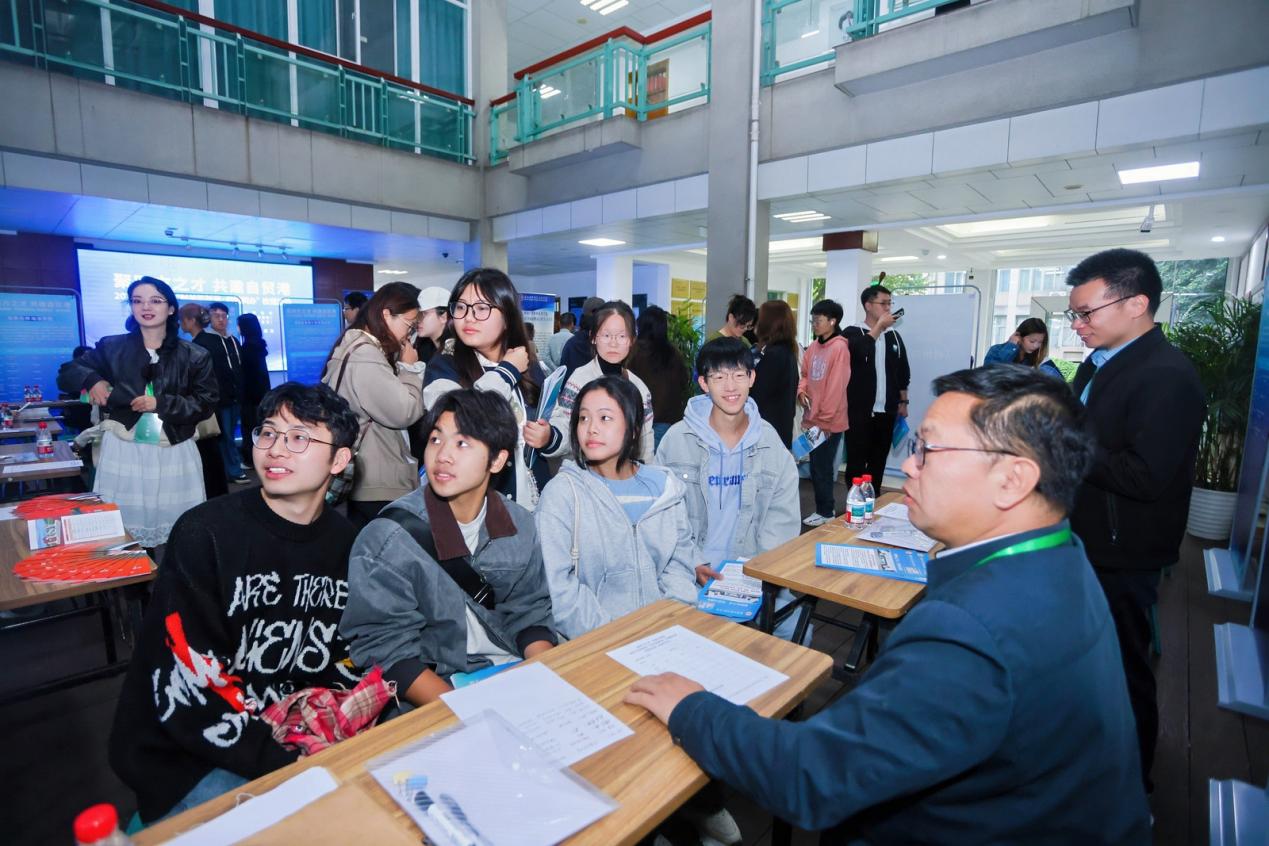 宣讲会结束后,学生们纷纷涌入双选会现场,与来自海南的用人单位展开深度交流。各企业展位前人头攒动,同学们手持简历,积极咨询岗位信息,用人单位代表耐心解答,现场气氛热烈而有序。