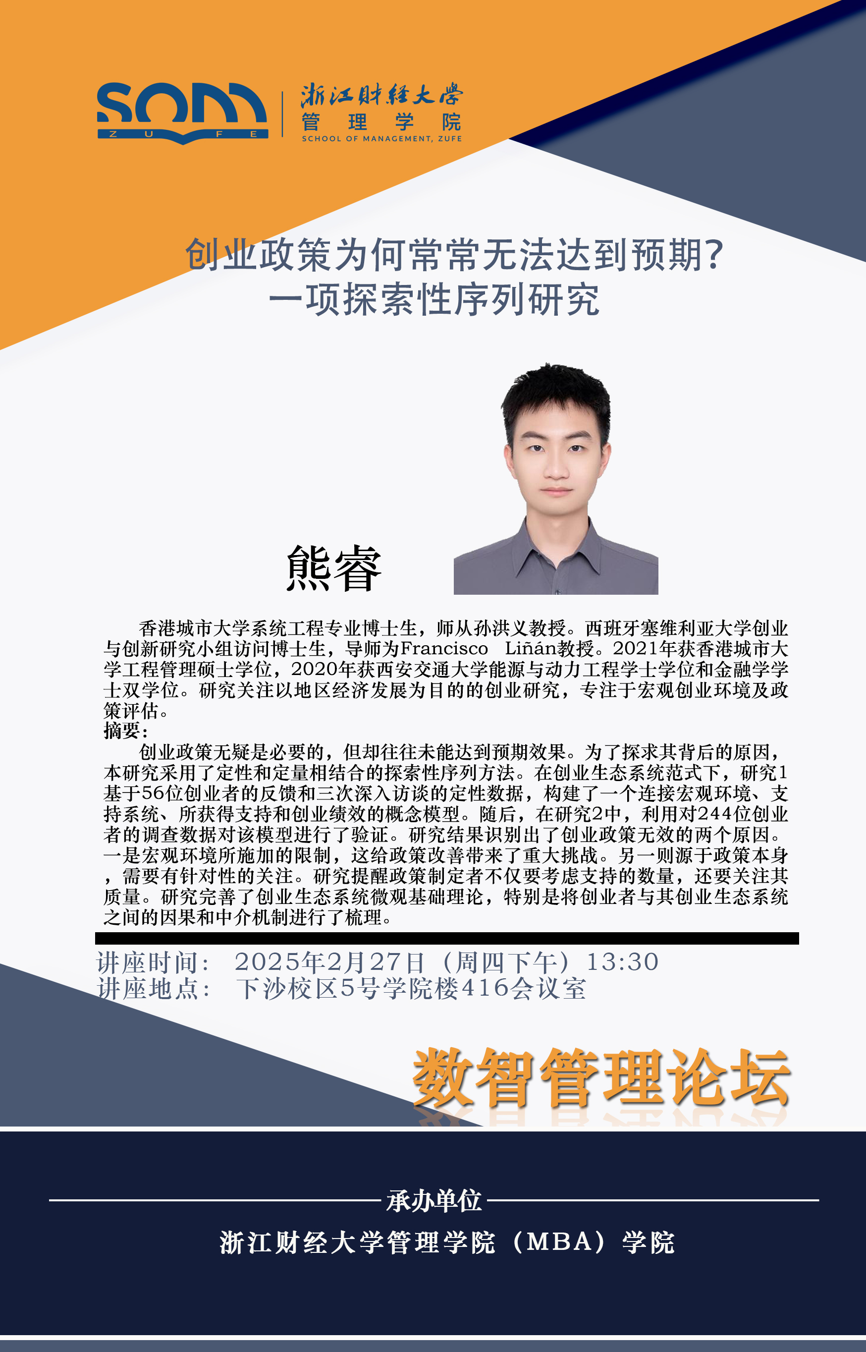 香蕉视频 新财经战略系列学术活动2025年第3期【学术报告】熊睿:创业政策为何常常无法达到预期?一项探索性序列研究
