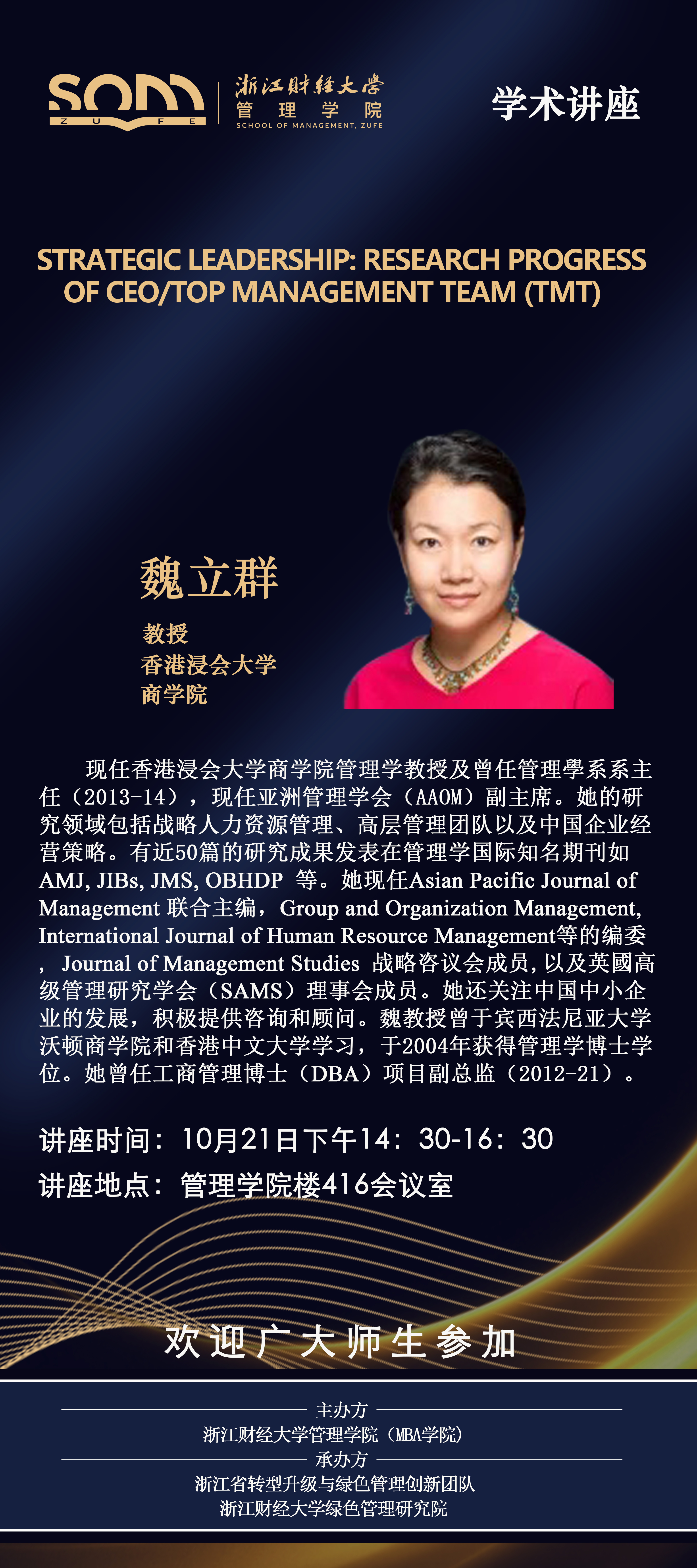 【讲座预告】魏立群教授:Strategic leadership: Research Progress of CEO/Top Management Team (TMT)
