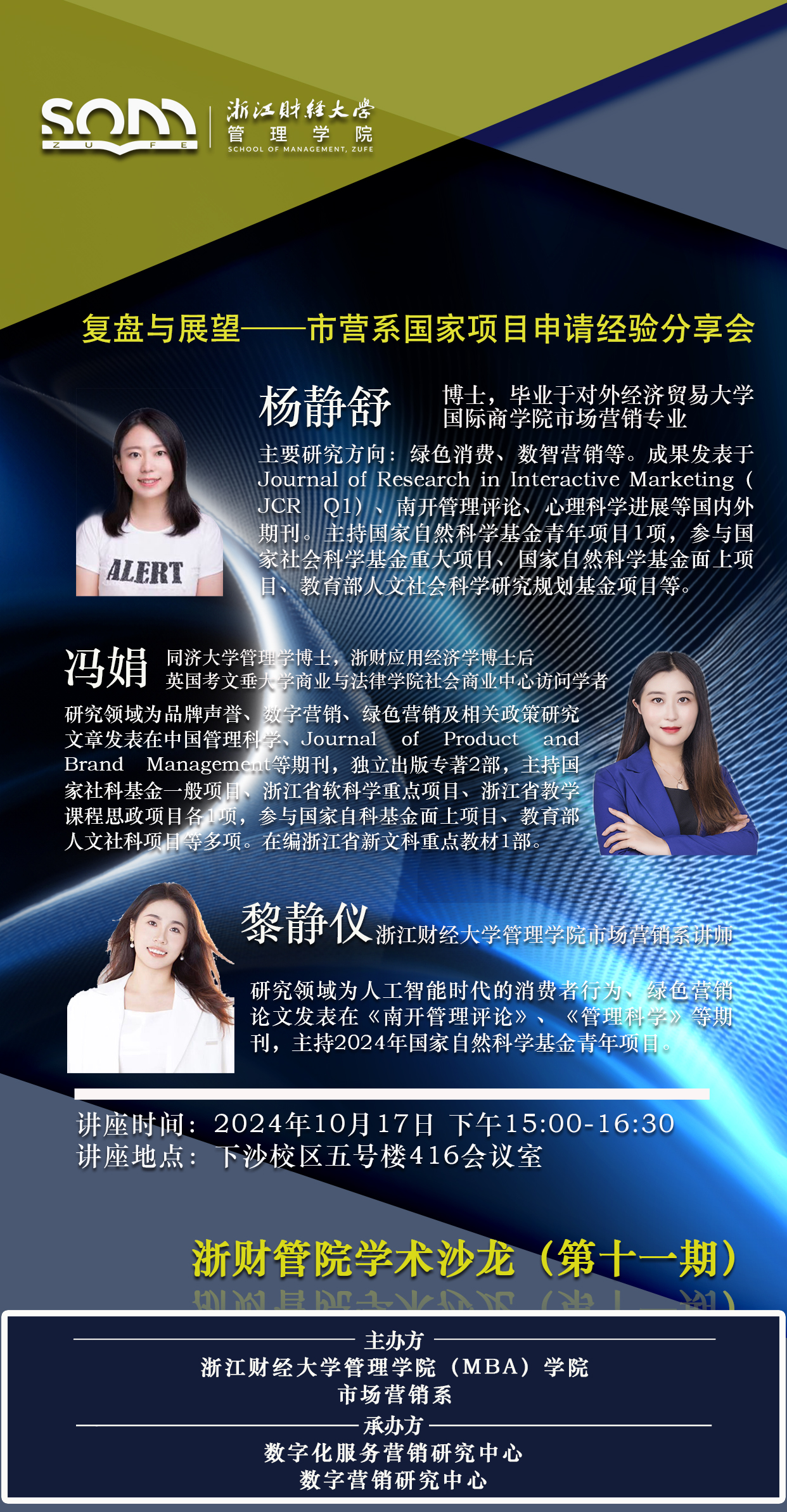 【浙财管院学术沙龙(第十一期)预告】杨静舒,冯娟,黎静仪:复盘与展望-市营系国家项目申请经验分享会