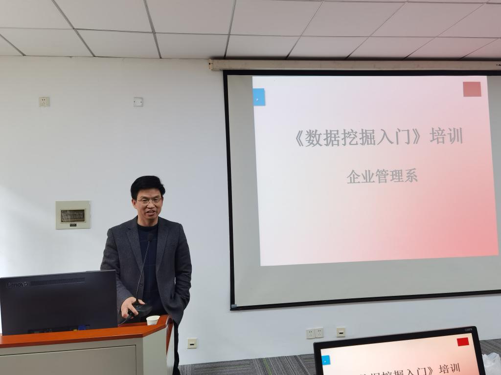 工商管理国一流专业负责人董进才副校长作为企管系一名教师也到场进行了听课,对学院鼓励广大教师利用校内资源,更新知识储备、学习新技能的在岗培训做法提出了高度肯定,他指出:本次培训不仅是数据挖掘基本算法的学习,更重要的是教师们数字化教学内容提升和文理思维的碰撞,有利于开展一流课程建设水平的提升和工商管理数智人才培养的实现。