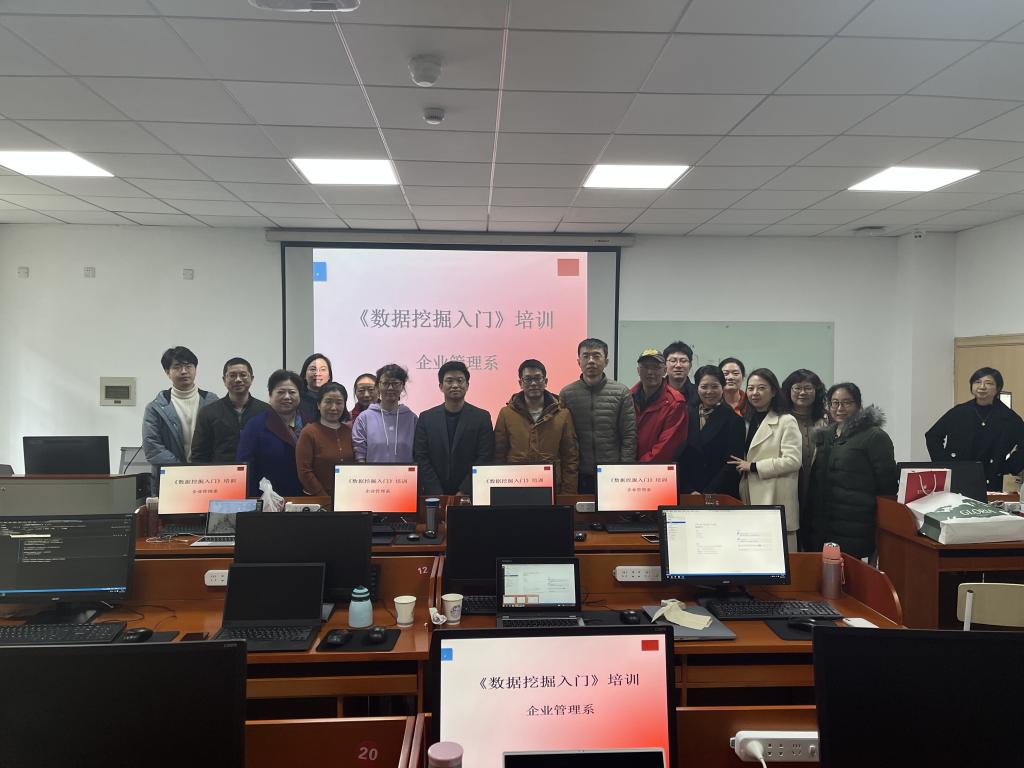 教师培训《数据挖掘入门》课程,讲解数据挖掘基本算法。来自企业管理、市场营销、人力资源管理、供应链管理系的23位教师及1名工商管理硕士研究生参加了此次培训,历时四天。本次课程主要学习了数据挖掘概述、KNN聚类算法、决策树分类算法、随机森林和人工神经网络分类算法等。在张老师和姚老师的精心准备和精彩讲解下,老师们收获满满,期待着下学期相约《数据挖掘中级》课程。