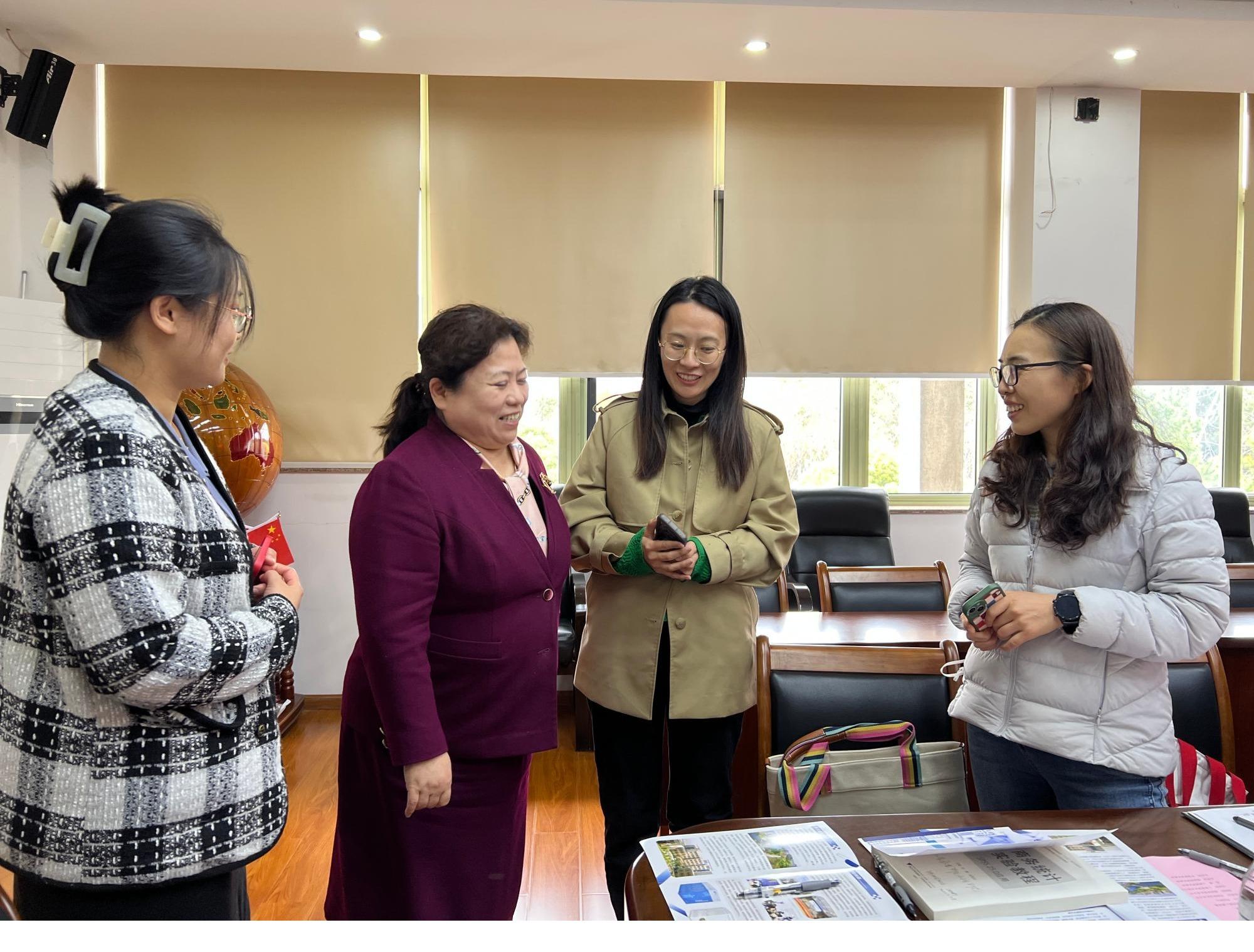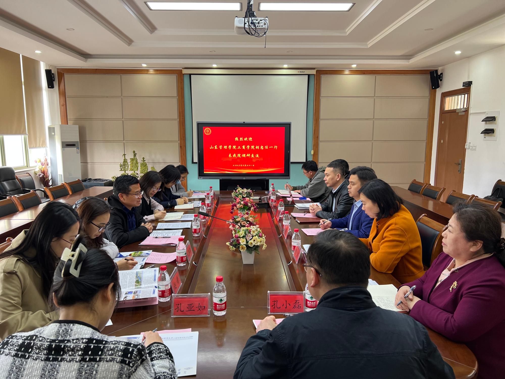 进行调研,学院教学副院长张雷、院党委成员郭军灵、市营系主任陈颖、供应链管理系主任田家欣、数智管理创新班执行人沈渊、国际合作与认证中心主任孔小磊、供应链系教师周学广等教师在学院410会议室进行了交流。
