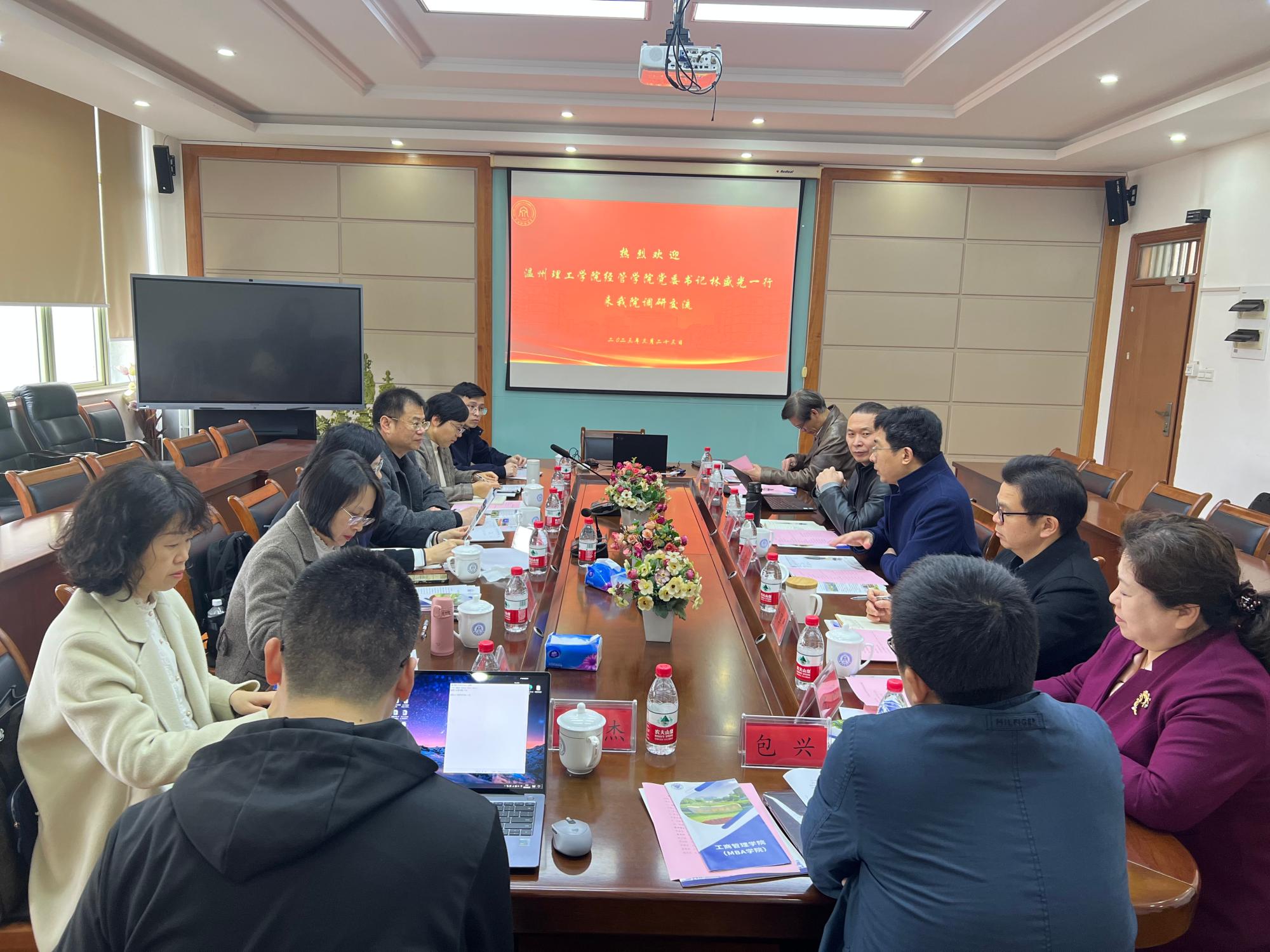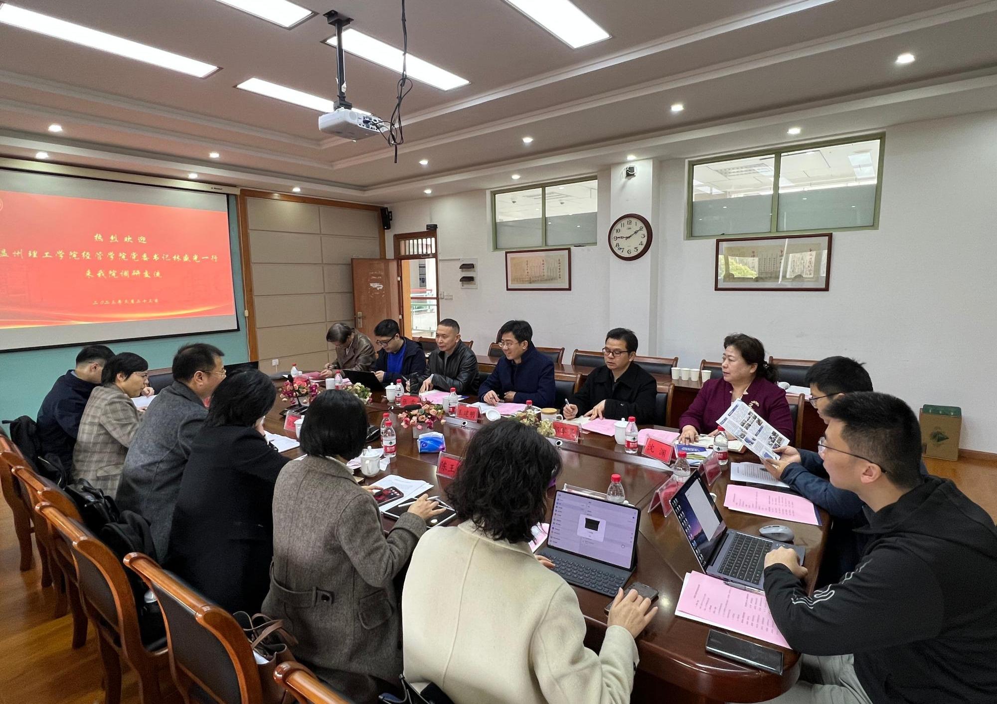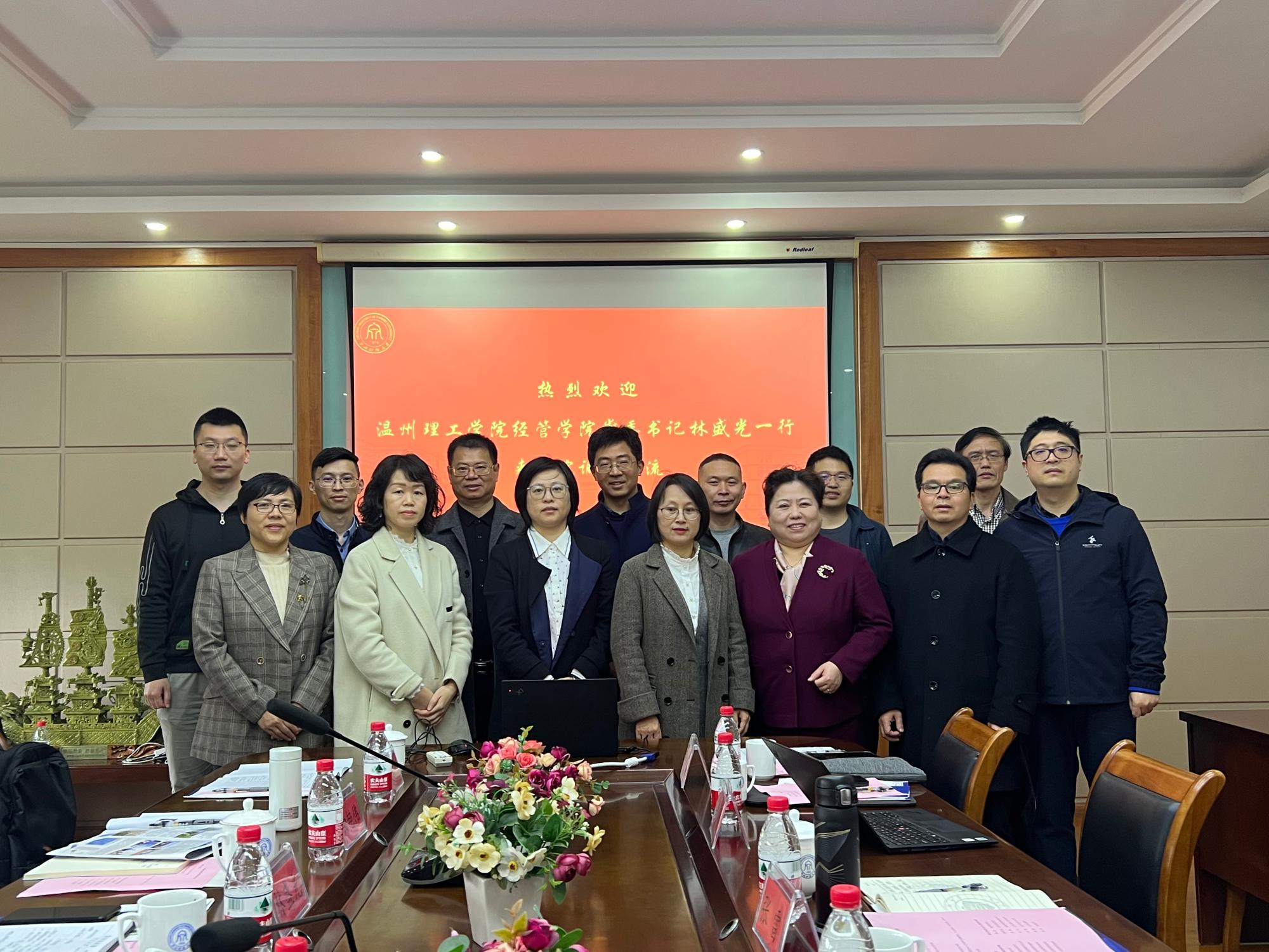 3月23日上午温州理工学院经管学院书记林盛光、党委委员董黎晖、工商系主任陈王伟和系部教师等一行等七人来香蕉视频