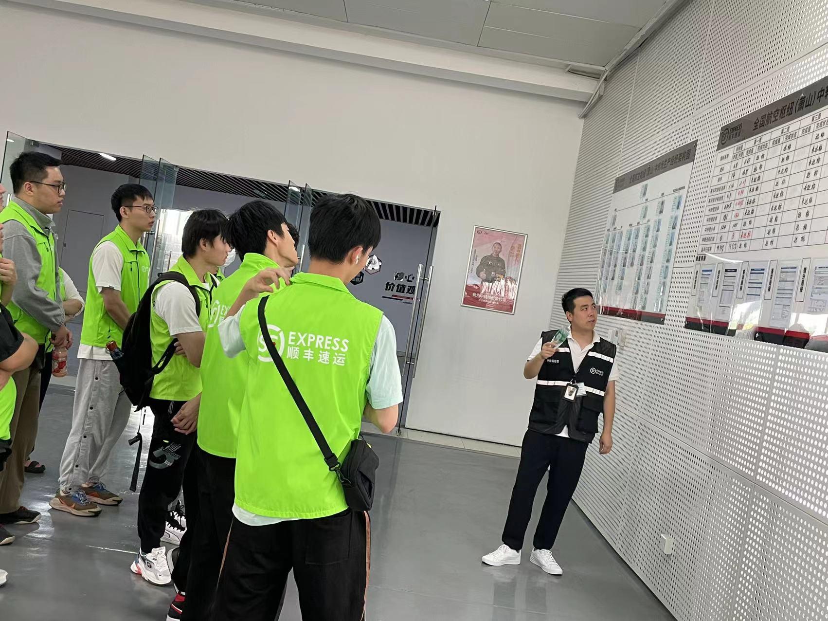 为拓宽学生专业视野,促进专业教学与生产实际对接,2023年6月13日,《物流系统规划与设计》课程任课老师王媛媛带领全班同学赴顺丰杭州航空枢纽开展认知实践活动。杭州航空枢纽运营经理朱林枫参加了此次教学实践活动,并为师生们讲解了中转场生产组织架构、工艺布局、生产流程和质量管理等。