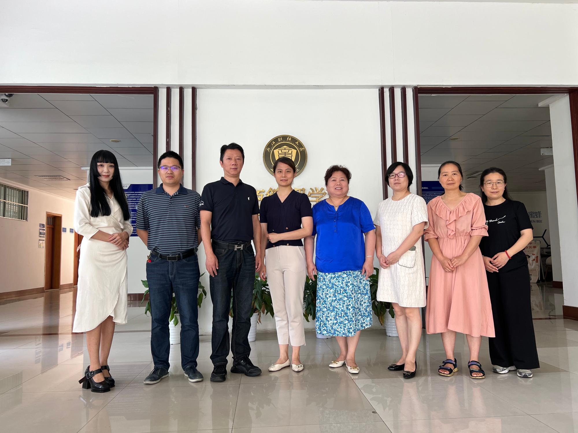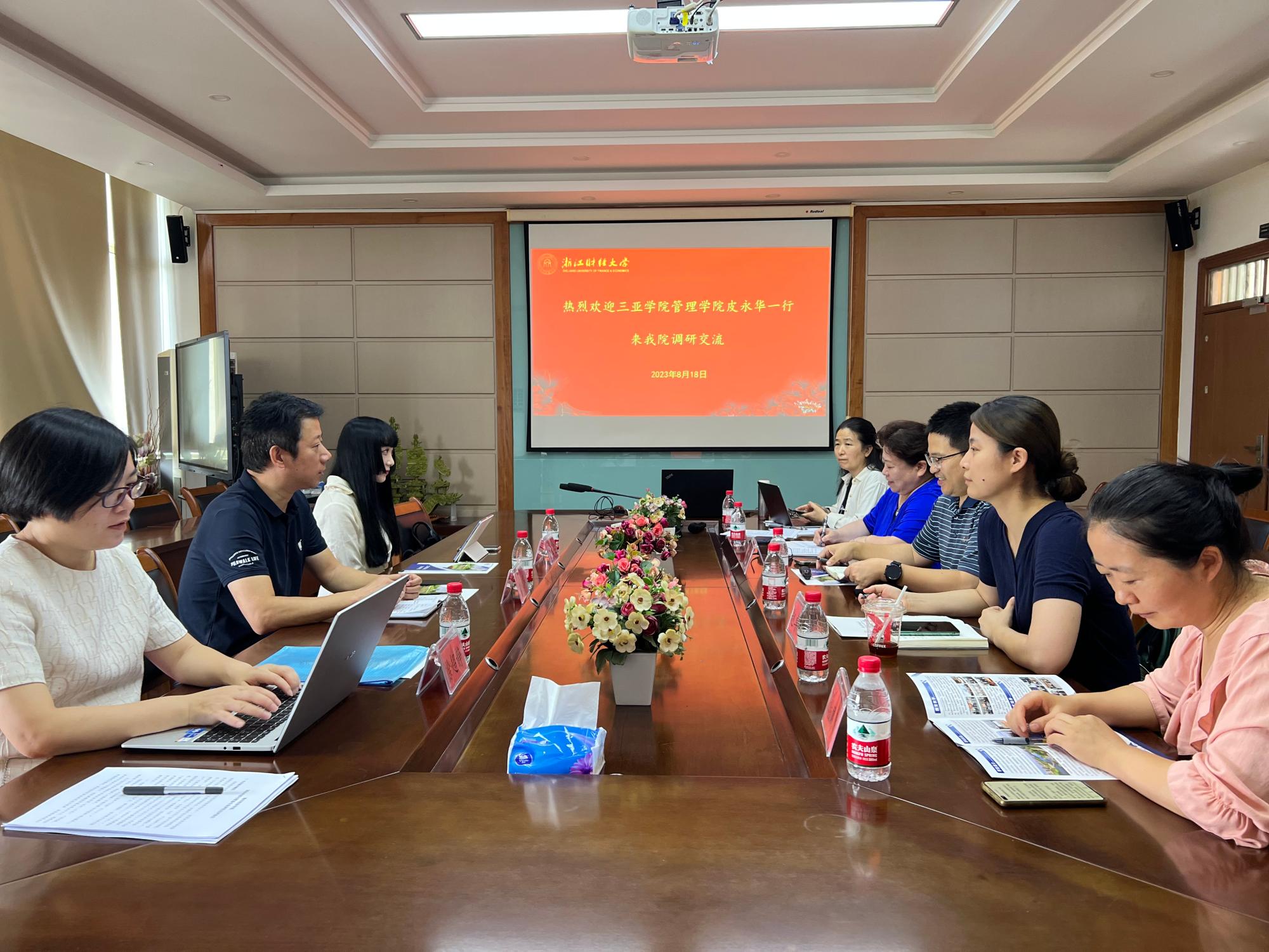 进行调研,企管系系主任包兴、吴丽民、数智管理创新班执行人沈渊、市营系教师谢凤华、经济学院国贸系教师赵卓嘉、教学办赵红等人在学院410会议室参加了交流。