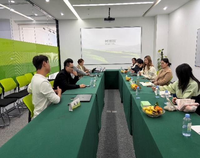 “有棵树”是一家成立于2018年的新锐内衣品牌,凭借精准的市场定位与创新的营销策略,在竞争激烈的电商领域中迅速崛起,目前年产值已突破20亿元。参观期间,同学们与公司高层管理团队——人资总李文震、内容营销总张浩、品牌经理周路凯、人资经理陈月月和计秀等进行了面对面交流。管理层详尽分享了公司的发展历程、业务模式及未来战略规划,并深入剖析了“有棵树”如何通过市场细分与品牌传播有效吸引目标消费者。讲解还完整呈现了产品从设计研发到线上销售的全流程,重点揭秘了在电商平台实现高效用户转化的核心策略。此外,公司也介绍了与明星合作及社交媒体推广的实践经验,全面展现了其在新媒体运营领域的积极探索。