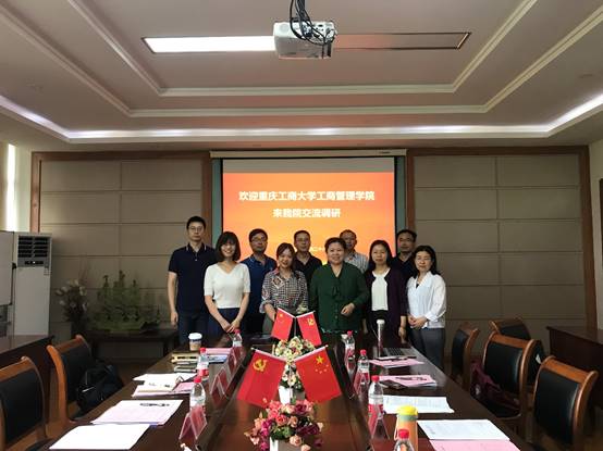 进行调研。学院沈渊教授、工商系主任吴丽民、人力系主任旷开源、中美合作项目负责人王建国、人力系教师张维维等人参加了交流。