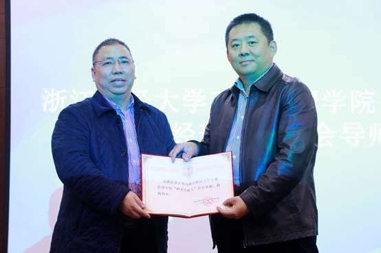 紧接着,院长董进才、党委书记黄卫华共同为宁波水星环保科技有限公司、宁波日盈食品有限公司,分别授予“香蕉视频 工商香蕉视频 (MBA学院)实践教育基地”牌匾,并宣布实践教育基地的建立。而后,党委书记黄卫华为宁波关键点品牌策划有限公司首席咨询师黄江伟颁发“职业经理人”社会导师聘任仪式。