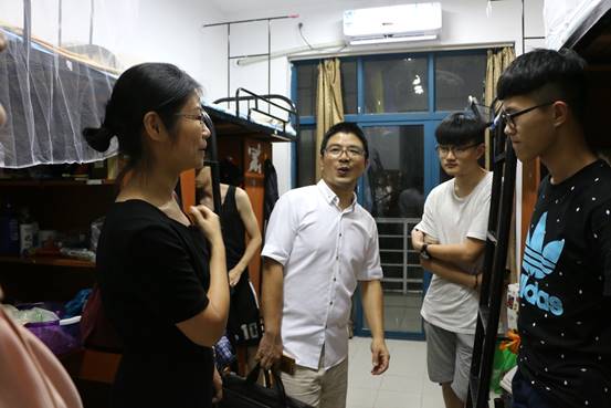 党委副书记谢敏、学办主任胡星平、团委书记喻一珺以及班主任老师走访了新生宿舍。