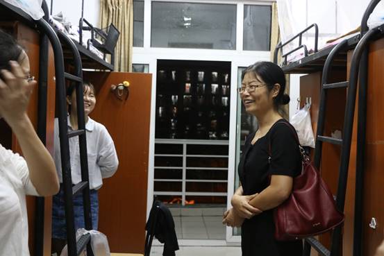 谢书记首先来到了女生宿舍,在宿舍里详细地询问同学们宿舍的供水情况,并当面表扬了卫生状况良好、个人物品布置整洁的寝室。谢书记和同学们分享了自己的大学寝室生活,亲切地叮嘱各位新生,进入全新的大学学习阶段,同学们需要一个适应过程,而温馨团结的寝室氛围无疑是最大的精神动力。在共同生活的时间里,谢书记希望新生们能够增进了解、相互包容,以浓浓的室友情弥补苦涩的思亲之情。