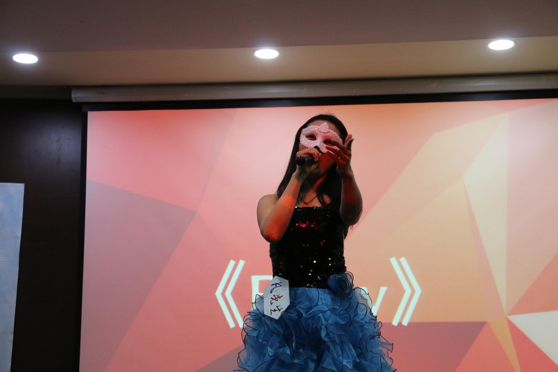 拉开此次比赛序幕的是由学院Feeling吉他社带来的开场表演。鼓点阵阵,现场观众随音乐挥起了荧光棒,大呼期待。随后,选手们的集体走秀亮相为整场比赛带来了看点:一是面具造型,二是昵称称谓。对此活动策划者也是下足了心思。