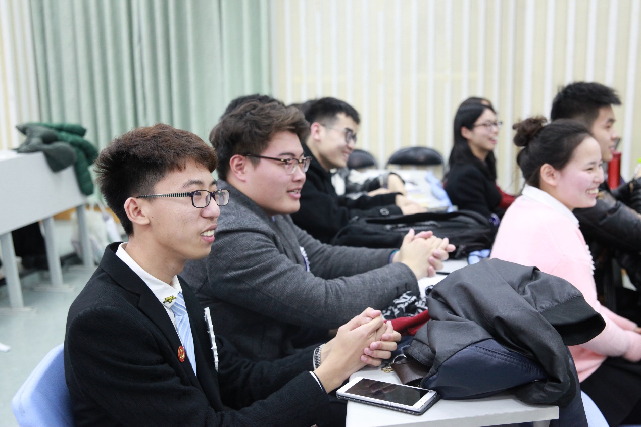 十佳青年评比活动总决赛在学院楼211教室举行。院党总支书记尤利群、学办老师刘远琳、胡星平、俞佳、喻一珺、余亮以及15级班委组成评委团进行投票,此外,现场观众也拥有投票权。