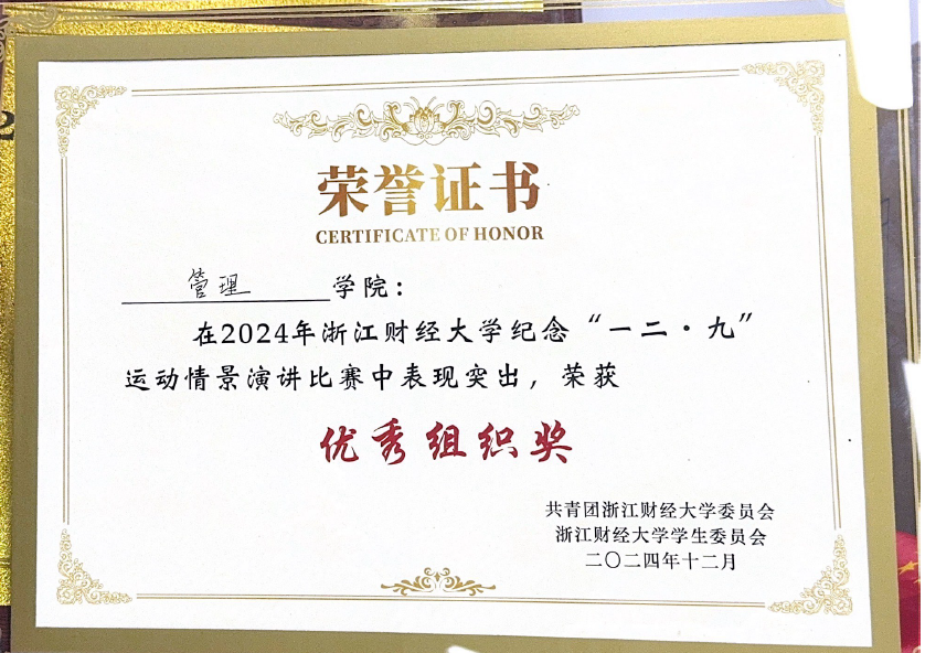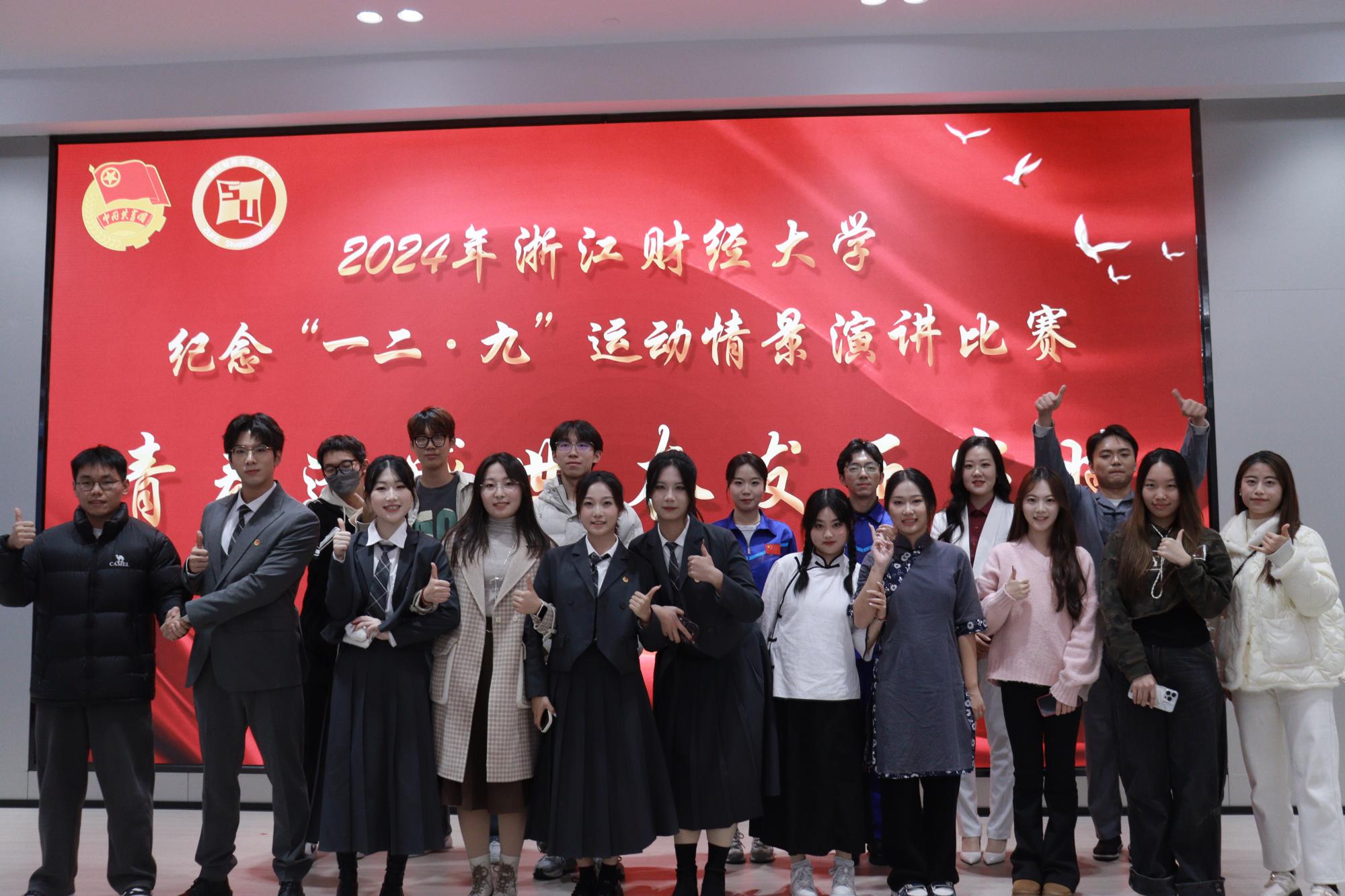 于图书馆5楼西报告厅隆重举行“一二·九”运动情景演讲比赛。浙财学子们以艺术为媒介,生动演绎了启人心智、激人奋进的红色传奇,彰显了他们勇往直前、积极进取的壮志雄心。