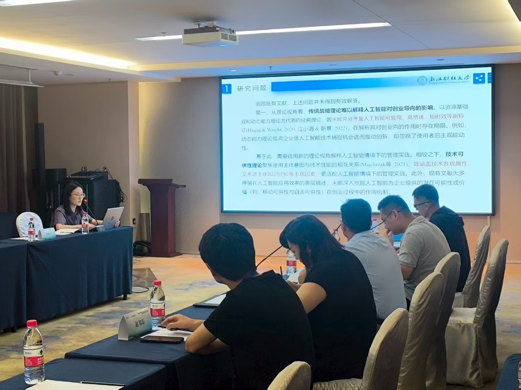 2023级硕士研究生张蓝予与导师戴维奇教授合作的论文《人工智能应用、技术可供性与创业导向》受邀汇报。该论文基于技术可供性理论,探索人工智能应用对企业创业导向的影响,并揭示人工智能可供性在其中的中介作用。该研究丰富了技术可供性理论的相关研究和创业导向的前因研究,对我国企业利用人工智能技术实现成功创业具有重要启示。