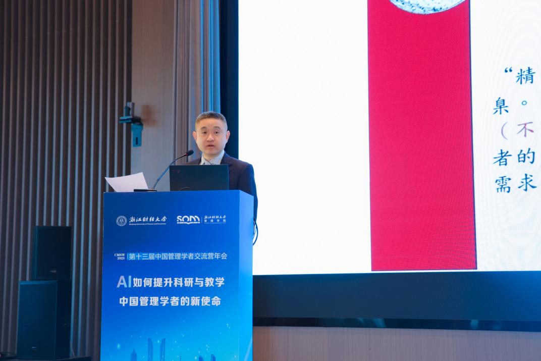 吴迅教授作了题为“AI时代的管理研究”的主题报告。他以融合了原则性与调适性的东方哲学理念“精一时中”开篇,认为在AI技术引发剧烈变化的时代,学者与企业更需持守核心信念与初心,并以简驭繁,灵活应对环境变化。他以科技行业的现实案例说明,许多企业响应迟缓,并非缺乏技术能力,而是受困于既有的成功商业模式与评估体系。他指出,AI是深刻的技术进步,但其影响常被短期炒作所扭曲。真正的智慧在于识别哪些是根本性改变,哪些是不变的本质。最后,他呼吁广大管理学者与实践者在“变易”中持守“不易”的初心。唯有如此,才能在AI时代实现个人、组织与社会的可持续发展。