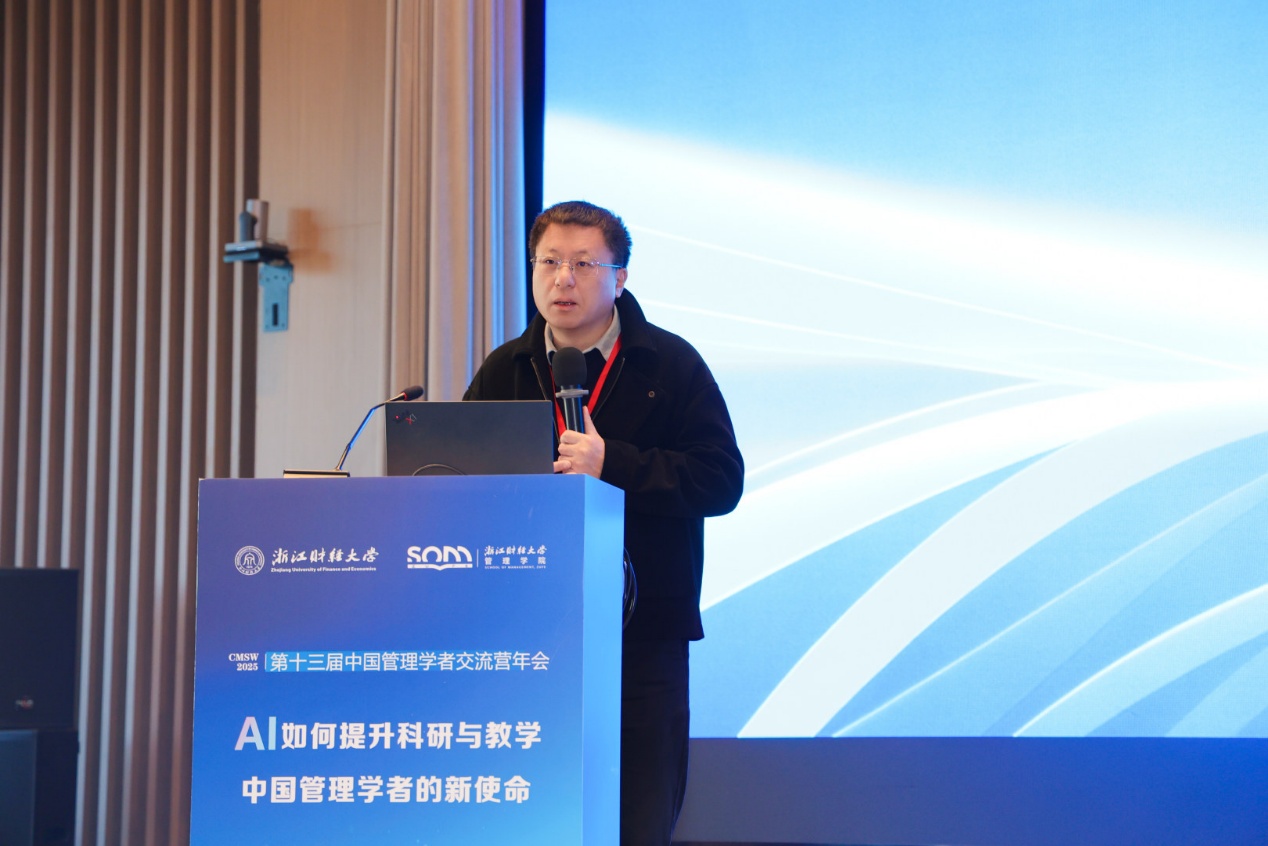 校党委书记、校长魏江教授在致辞中首先对与会嘉宾的到来表示欢迎,并介绍了学校基本情况和近年来取得的成绩。他表示,学校始终坚持以服务地方为使命,致力于把浙江研究好、服务好。浙江作为民营经济发达、数字化改革走在前列的省份,为管理学科研究提供了丰富的场景。学校立足浙江、面向全国,在人工智能大发展背景下,积极探索如何助力企业转型升级、推动共同富裕。期待通过此次年会能够与各位专家学者交流,共同推动中国管理学科的进步。