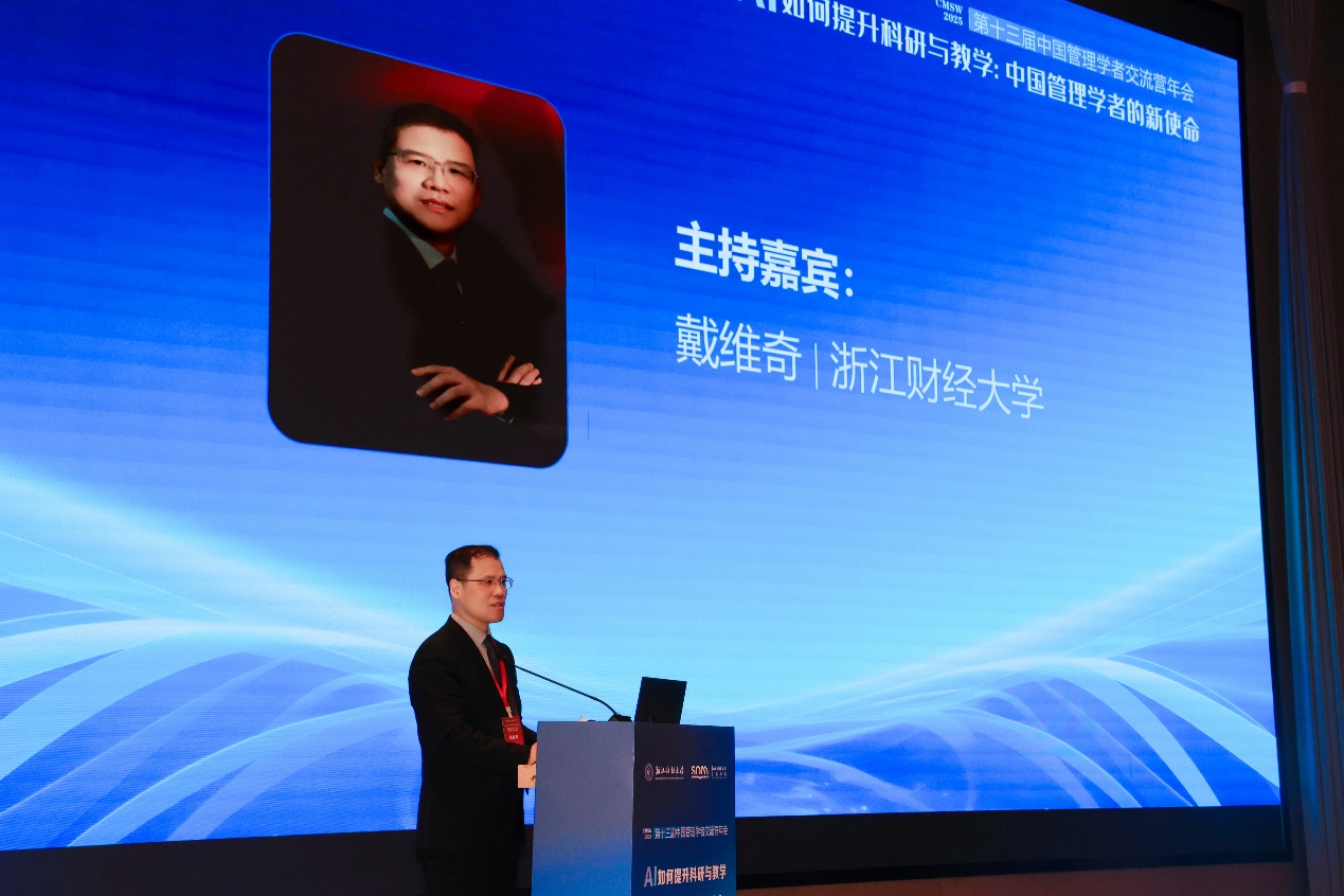 本次年会还特别开设了以“AI研究与教学”为主题的三个分论坛。悉尼大学商学院杨静钰教授、中南大学商学院沈超红教授和环球慧思公司创始人、董事长、CEO邵宏华先生分别担任主持嘉宾。与会人员围绕人工智能时代如何应对AI对教学科研以及管理实践带来的机遇与挑战展开热烈讨论。