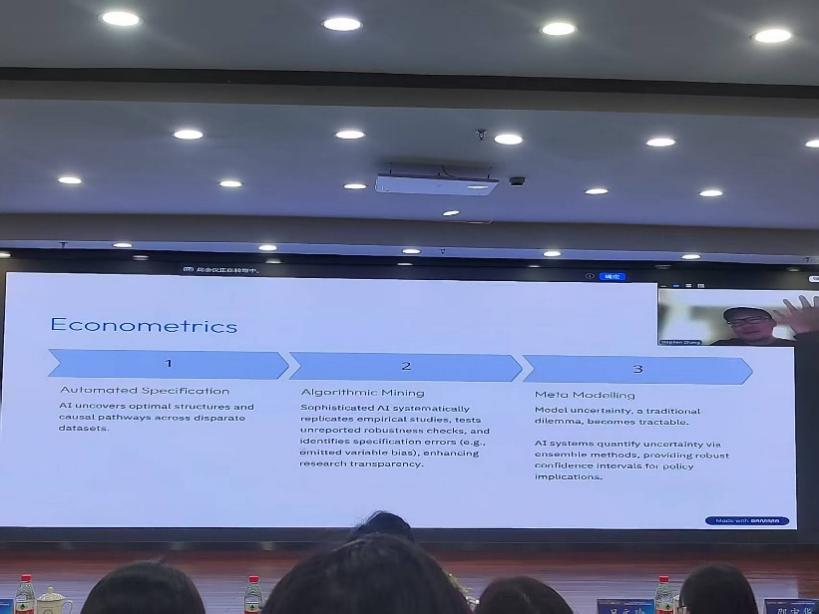 张旭教授作了题为“AI时代的创业”的主题报告。他从AI的研究谈到AI的创业研究,分享了AI时代数据处理的不同。他提到AI正在重塑创业活动本身的结构,由此改变创业研究的观察与识别。张教授谈到AI使更多的创业行为变得可度量,使创业的每个阶段都能成为实验。AI可以在海量论文中抽取机制、识别矛盾、归纳理论模式,并提出替代性的因果结构。研究者的角色从“生成想法”逐步转向“监督大规模理论搜索与结构筛选”。他提到随着AI的升级,稀缺资源不再是统计技巧。在AI时代,创业研究会出现新的前沿。对研究者而言,关键问题正在转变,需要思考哪些具有不可替代的价值。