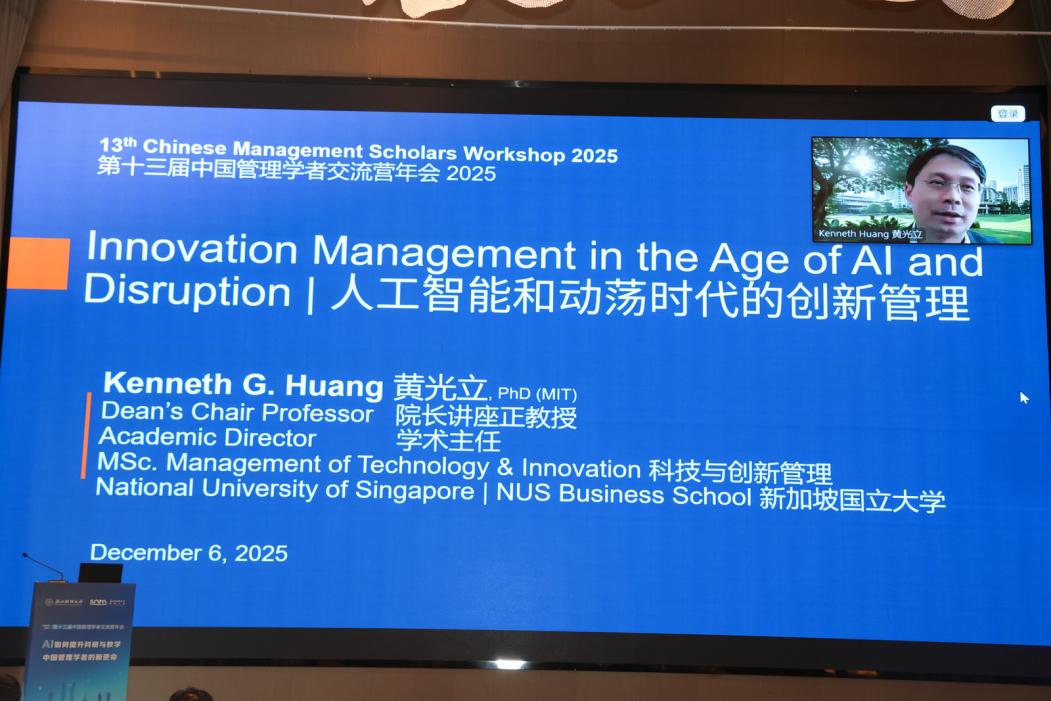 黄光立教授以“人工智能和动荡时代的创新管理”为题作线上报告。他深刻阐述了在当今时代背景下人工智能在创新管理中的角色定位,强调了不同经济体系下AI带来的影响。他以中美两国作为成熟转型的经济体为研究案例,借用两国之间的差异研究分析了公司、区域、国家层面的创新策略与轨迹,提出了解读AI在迅速变化的市场中的影响的新视角。他还揭示了地缘政治压力下企业以AI应对创新壁垒的策略,填补了外部监管与AI应用关联的研究空白,认为AI可作为战略工具增强内部创新,政策层面需关注外资管制的意外后果,政府应助力企业以AI缓解协作中断的影响。