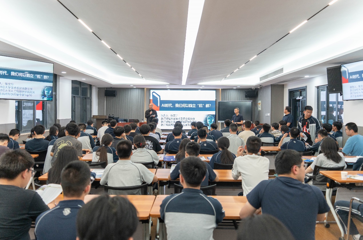 讲座现场座无虚席,氛围热烈浓厚。张文宇教授学识渊博、谈吐风趣,以《AI时代,我们何以鹤立“机”群》为题,通过轻松鲜活的表达方式层层展开分享,全程金句频出、妙语连珠,为在场师生奉上一场精彩绝伦的思想盛宴,现场掌声此起彼伏。