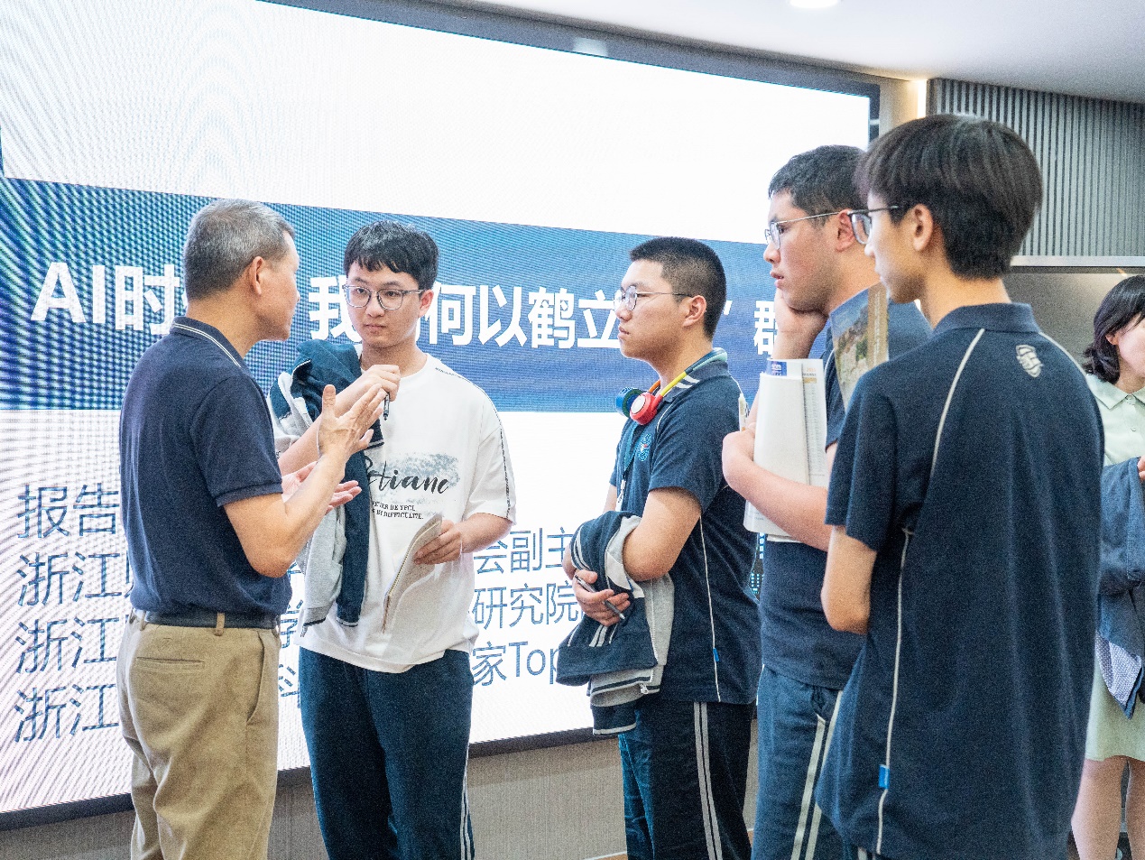 讲座紧扣人工智能发展热潮,从AI写诗、AI趣味角色扮演等青少年熟知的前沿热点切入,快速拉近交流距离。授课过程中,张教授结合时代发展大势指出,当下社会跨界融合加剧,复合型、多学科交叉人才,特别是AI原生的新财经人才已成时代刚需。同时,他以“人类会放弃经济社会的方向盘吗?”等深刻设问,引导学生辩证看待AI高速发展带来的机遇与挑战,启发学子明晰当下学习价值,拓宽知识边界,坚守自律本心,全面锤炼综合素养。