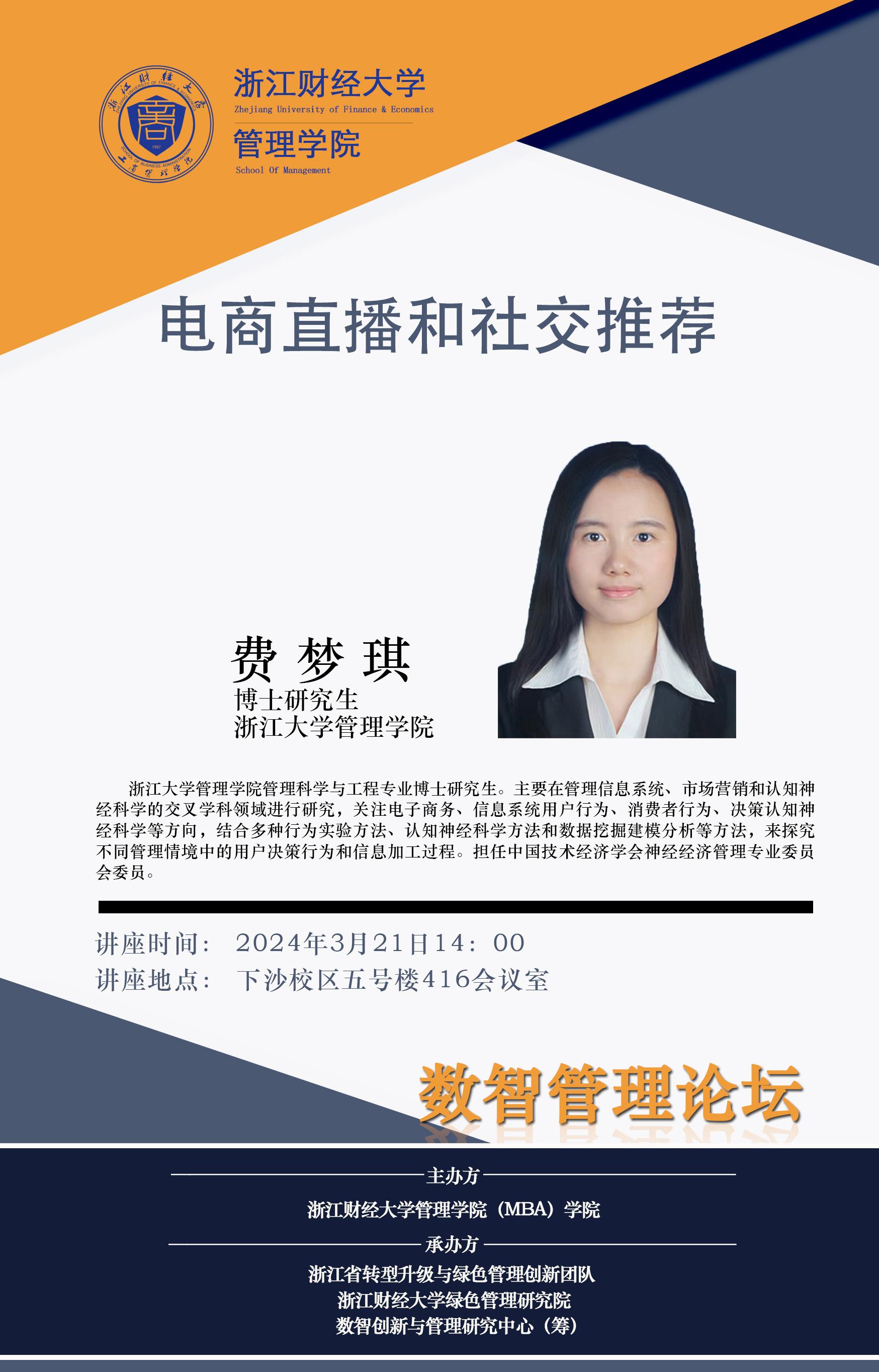 【院级研究中心讲座预告】费梦琪:电商直播和社交推荐