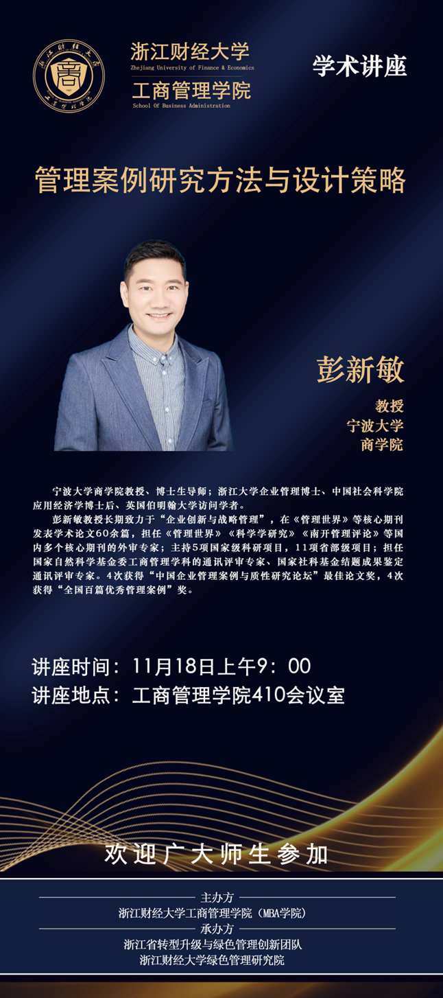 【讲座预告】彭新敏教授:管理案例研究方法与设计策略